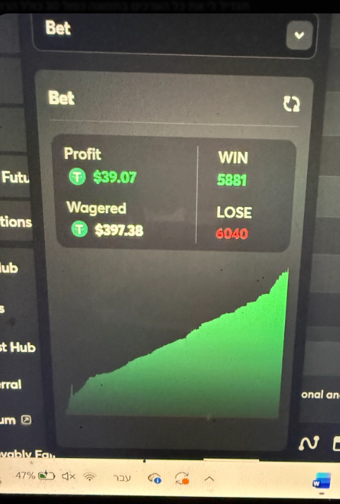 Hi everyone, I’m releasing a version of my personal Hash Dice script (OMEGA v7) as a gift to the community. This engine is the result of applying my 5 years of algorithmic trading experience to high-variance gaming environments. Important Disclaimer: Gambling involves significant risk. This script is based on my personal research and testing. It is not a guarantee of profit. Use it at your own risk and only with capital you can afford to lose. The Logic Behind OMEGA v7: Instead of a blind betting pattern, this script uses a State Machine to navigate through different phases of a session: GHOST Phase: Runs 0.0001 bets to analyze the seed and wait for a specific setup. HUNT Phase: Enters active betting once the setup is detected, using Bet Jitter to vary the bet size slightly for better account protection. The Vault (Trailing-Stop): Once a profit target is hit, the script activates a trailing stop-loss, "locking" gains and moving the exit floor upward as you win. Cooldown: Forced rest periods between sessions to maintain engine stability. Test Run Results (See Attached Screenshot): This screenshot demonstrates a stability run of nearly 12,000 autonomous rounds. You can see the engine successfully navigating drawdowns and recovering using the trailing logic. Total Rounds: 11,921 (Wins: 5881 / Losses: 6040) Wagered Volume: $397.38 Net Profit: $39.07 The Code: var config = { hunt_bet: { label: "Hunt Bet", value: 0.02, type: "number" }, hunt_pay: { label: "Hunt Payout", value: 10.00, type: "number" }, trail: { label: "Trail Amount", value: 0.30, type: "number" }, trail_act: { label: "Trail Activate", value: 0.50, type: "number" }, hard_sl: { label: "Hard Stop Loss", value: 1.00, type: "number" }, hunt_max: { label: "Max Hunt", value: 20, type: "number" }, cooldown: { label: "Cooldown Rounds",value: 50, type: "number" }, max_loss: { label: "Kill Switch $", value: 3.00, type: "number" }, ghost_min: { label: "Ghost Min", value: 5, type: "number" }, ghost_max: { label: "Ghost Max", value: 10, type: "number" }, hit_ghost_min:{label: "Hit Ghost Min", value: 2, type: "number" }, hit_ghost_max:{label: "Hit Ghost Max", value: 5, type: "number" }, bet_jitter: { label: "Bet Jitter %", value: 20, type: "number" }, initial_bal:{ label: "Balance", value: currency.amount, type: "number" } }; var total = 0, sess = 1, sW = 0, sL = 0, rd = 0; var sn = 0, pk = 0, g = 0, hN = 0, hits = 0; var trailOn = false; var mode = 'GHOST'; var coolLeft = 0; var ghostTarget = 8; function randGhost(isAfterHit) { var lo, hi; if (isAfterHit) { lo = config.hit_ghost_min.value; hi = config.hit_ghost_max.value; } else { lo = config.ghost_min.value; hi = config.ghost_max.value; } return Math.floor(Math.random() * (hi - lo + 1)) + lo; } function jitter(base) { var pct = config.bet_jitter.value / 100; var mult = 1 + (Math.random() * 2 - 1) * pct; var b = base * mult; return Math.round(Math.max(0.0001, b) * 10000) / 10000; } function startSession() { sn = 0; pk = 0; g = 0; hN = 0; hits = 0; trailOn = false; mode = 'GHOST'; ghostTarget = randGhost(false); log.info("S" + sess + " START | Ghost:" + ghostTarget + " | Total:" + total.toFixed(4) + " W:" + sW + " L:" + sL); } function startCooldown() { coolLeft = config.cooldown.value + Math.floor(Math.random() * 20); mode = 'COOL'; log.info("COOLDOWN " + coolLeft + " rounds..."); } function main() { ghostTarget = randGhost(false); log.info("OMEGA v7 AUTO | x" + config.hunt_pay.value + " trail:" + config.trail.value); game.onBet = function() { rd++; var B = config.hunt_bet.value; var T = config.hunt_pay.value; var TRAIL = config.trail.value; var TACT = config.trail_act.value; var SL = config.hard_sl.value; var HMAX = config.hunt_max.value; var KILL = config.max_loss.value; if (total <= -KILL) { log.error("KILL " + total.toFixed(4) + " S:" + sess + " W:" + sW + " L:" + sL); game.stop(); return; } /* === COOLDOWN === */ if (mode === 'COOL') { coolLeft--; if (coolLeft <= 0) { sess++; startSession(); } game.bet(0.0001, 1.0102).then(function(p) { var pf = p > 1 ? 0.0001 * 0.0102 : -0.0001; total += pf; }); return; } /* === CHECK TRAIL / SL === */ if (sn > pk) pk = sn; if (pk >= TACT) trailOn = true; if (trailOn && sn <= pk - TRAIL) { sW++; log.success("TRAIL S" + sess + " +" + sn.toFixed(4) + " pk:" + pk.toFixed(4) + " | Total:" + total.toFixed(4) + " W:" + sW); startCooldown(); game.bet(0.0001, 1.0102).then(function(p) { var pf = p > 1 ? 0.0001 * 0.0102 : -0.0001; total += pf; }); return; } if (sn <= -SL) { sL++; log.error("SL S" + sess + " " + sn.toFixed(4) + " | Total:" + total.toFixed(4) + " L:" + sL); startCooldown(); game.bet(0.0001, 1.0102).then(function(p) { var pf = p > 1 ? 0.0001 * 0.0102 : -0.0001; total += pf; }); return; } /* === GHOST PHASE === */ if (mode === 'GHOST') { g++; if (g >= ghostTarget) { mode = 'HUNT'; hN = 0; } game.bet(0.0001, 1.0102).then(function(p) { var pf = p > 1 ? 0.0001 * 0.0102 : -0.0001; sn += pf; total += pf; }); return; } /* === HUNT PHASE === */ var b = B; if (hN >= 5 && hN < 10) b = B * 2; if (hN >= 10) b = B * 4; b = jitter(b); var t = T; /* Payout jitter: randomly nudge target ±0.5 */ var payJitter = (Math.random() - 0.5) * 1.0; t = Math.max(2.00, T + payJitter); t = parseFloat(t.toFixed(2)); log.info("S" + sess + " H" + (hN+1) + " B:" + b.toFixed(4) + " x" + t + (trailOn ? " T@" + (pk-TRAIL).toFixed(3) : "")); if (rd % 50 === 0) { var real = currency.amount - config.initial_bal.value; log.info("R:" + rd + " S" + sess + " sn:" + sn.toFixed(4) + " total:" + total.toFixed(4) + " real:" + real.toFixed(4) + " W:" + sW + " L:" + sL); } game.bet(b, t).then(function(payout) { var won = payout > 1; var pf = won ? (b * t) - b : -b; sn += pf; total += pf; if (won) { hits++; log.success("HIT +" + pf.toFixed(4) + " sn:" + sn.toFixed(4) + " total:" + total.toFixed(4)); /* >>> GHOST BETWEEN HITS <<< */ mode = 'GHOST'; g = 0; hN = 0; ghostTarget = randGhost(true); } else { hN++; if (hN >= HMAX) { mode = 'GHOST'; g = 0; hN = 0; ghostTarget = randGhost(false); log.err