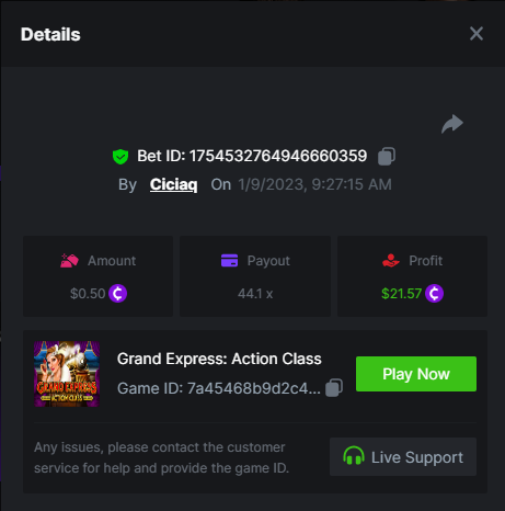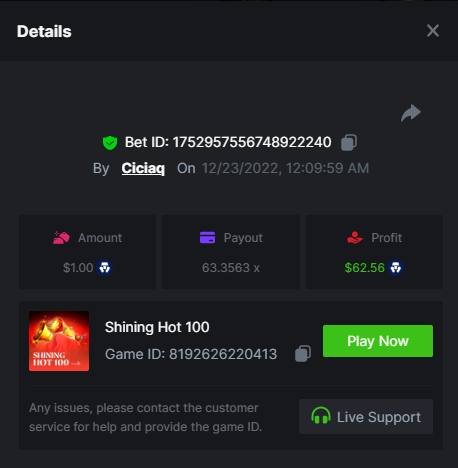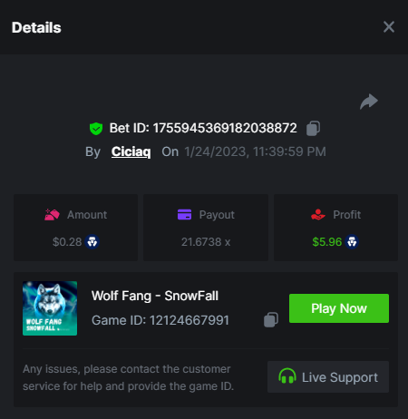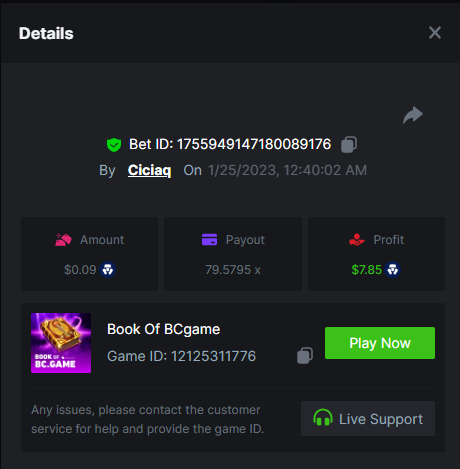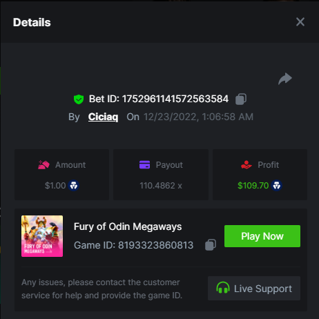 Story of Medusa 2 - 15.02x https://bc.game/#/sd/1123634SNL03KJ Wolf Fang - Snowfall - 21.67x https://bc.game/#/sd/1123253W7HMY37 Book of BCGAME - 79.58x https://bc.game/#/sd/11235VK3ZZCAAB Book Of Rampage 2 - 167.17x https://bc.game/#/sd/111Q81IG8W7H8Z Book Of Demi Gods IV - 90.05x https://bc.game/#/sd/111S31U2Y2UGPF Queen of Ice- Frozen Flames - 174.09x https://bc.game/#/sd/111TIXY9T5KKR7
