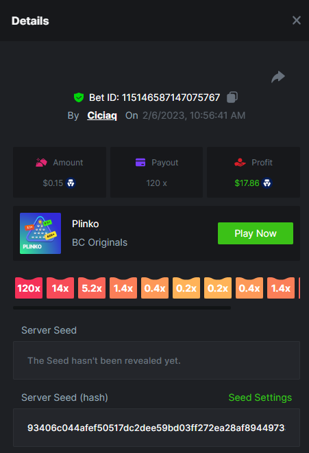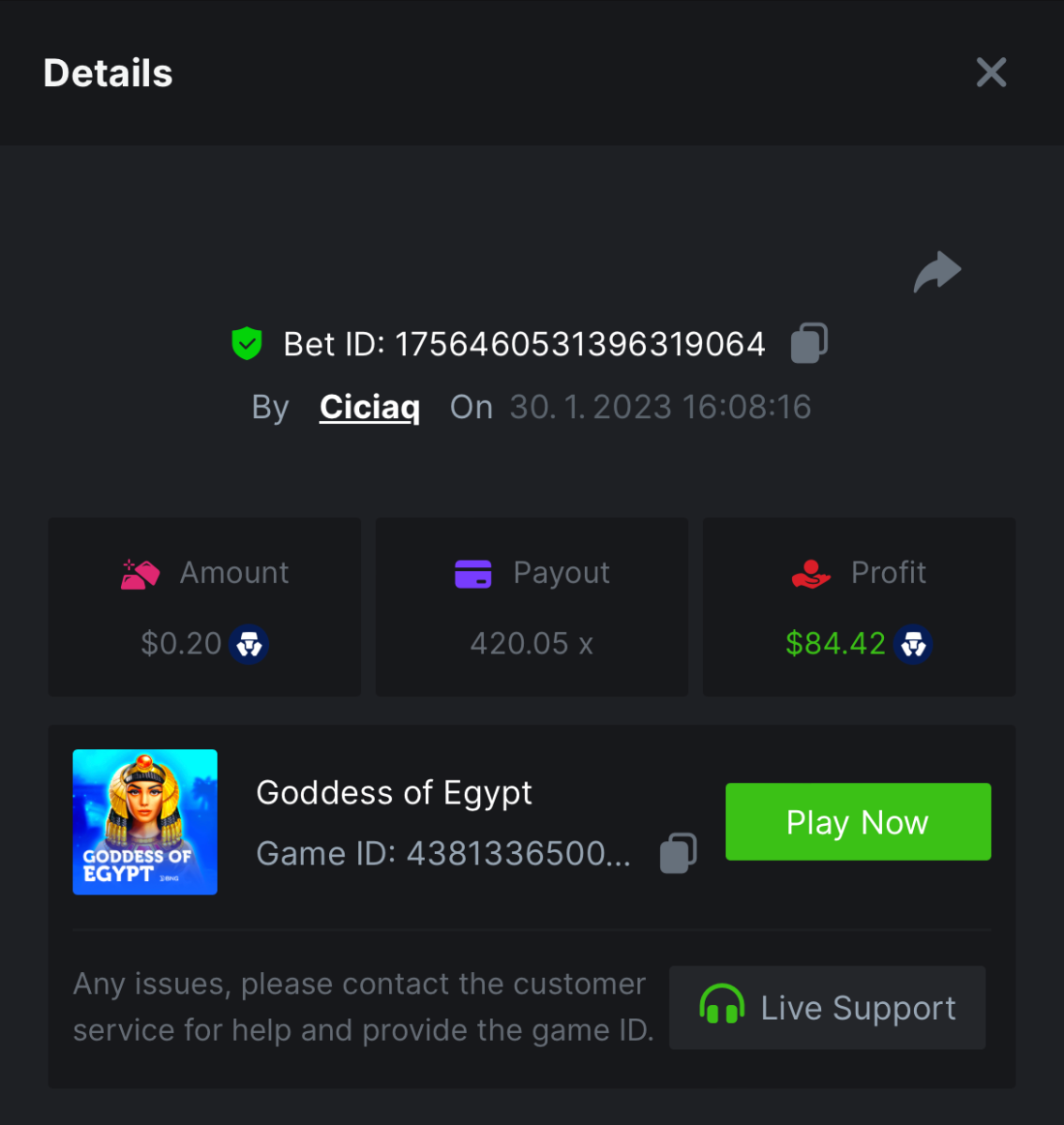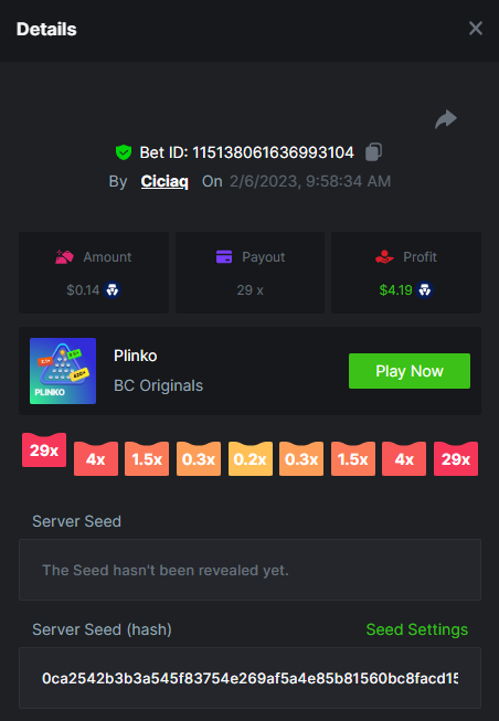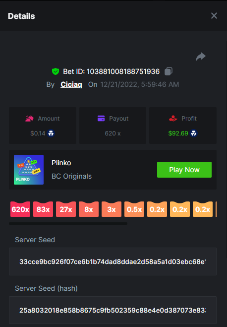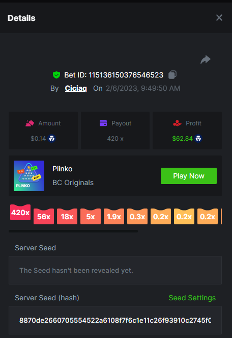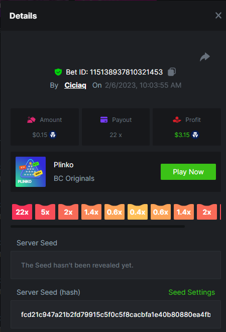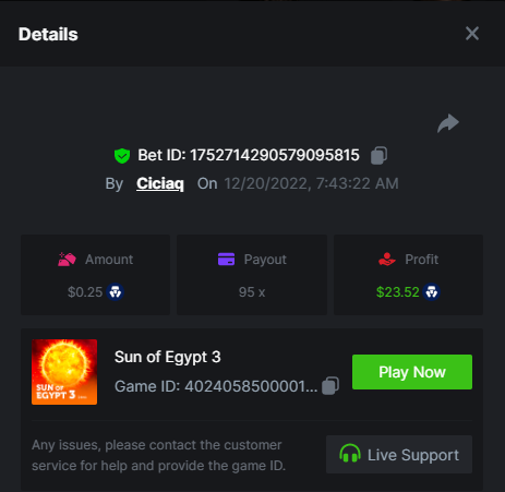 Majestic Winter - Avalanche - 247.05x https://bc.game/#/sd/112AMVQXAK8VTF Book of Wolves - 200.70x https://bc.game/#/sd/112AO7CEGTEBDF Times Of Egypt - Egyptian Darkness - 294.43x https://bc.game/#/sd/112ARJPKT3XDLF