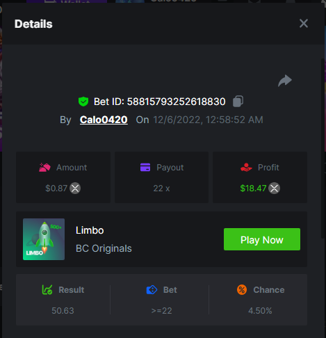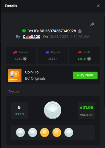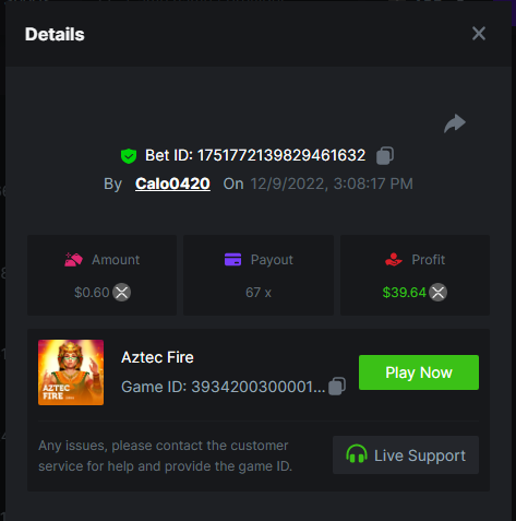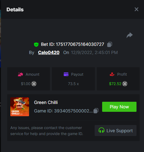 Calo0420 replied to BCGame_Maxim's topic in VIP Challenges