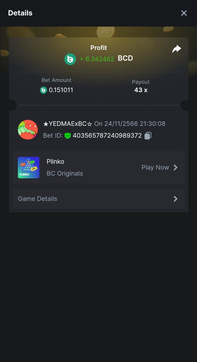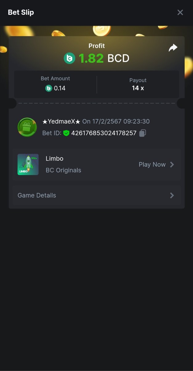 1. BC ONE BlackJack Minimum bet: 0.02 $BC Win 77 or 777 Rewards: 1st ----- $20 BCD 2nd ----- $15 BCD 3rd ----- $10 BCD 4rd to 10th ---- $4 BCD each Rules/Guidelines: The first 10 users to send the game link, the link with the bet, along with the details (UID, screenshot in the chat room or social media will be the winners! **(Screenshot history winning in GaAME and In BC)** Good luck to everyone! UID : 3983156