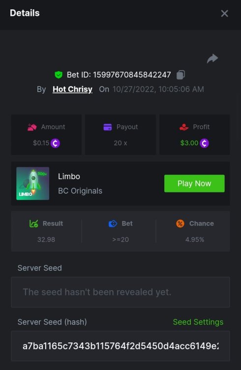 1. Bounty: https://bc.game/#/sd/10UDBYYTH55TLF I put in $.15bcd not .$14 guess it's market fluctuations. https://bc.game/#/sd/10UDBKHRACQMTV