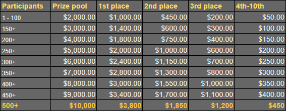 2. A special thanks to all players who participated in this Challenge. We had a total of 41 valid participants! Here is the winners list. Ranking 1st $1.000 - bassabar 2nd$500 - KG562 3rd$300 - LoskiY 2000x BOUNTY - Equal share of $200 - bassabar - KG562 - Elpresidente Check out our ongoing Challenges and those already made here.