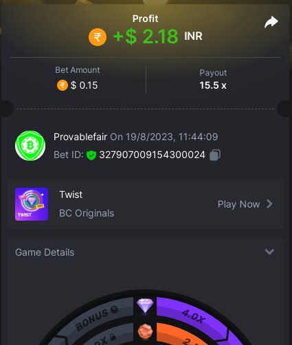 9x 0.15 $ - https://bc.game/#/sd/11GAN5GXNPZVAF - Bet ID: 327907009154299834 15.5x 0.15$ - https://bc.game/#/sd/11GANLBG0FY0GZ - Bet ID: 327907009154300024 -