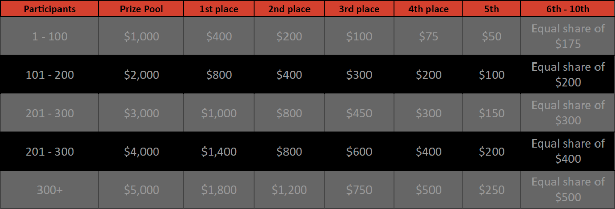 15. $5k Prestige DOUBLE Challenge #103 DURATION: 25th AUG - 1st SEP 12:30 pm UTC Greetings VIPs! We're ushering in another week of exclusive festivities at BC.GAME, meticulously curated for esteemed players like you. This week's highlight is a riveting tournament centered around our latest in-house sensation, DOUBLE, emphasizing consecutive bets. The mechanics are clear-cut, and the rewards are nothing short of spectacular. Dive into the event details and peruse the terms and conditions outlined below: What's the Challenge? Participants must win as many consecutive bets as possible by betting on either one of RED/BLACK on in-house DOUBLE game. Consecutive bets must be of the same color to validate the entry. Rank will be determined by the largest amount of consecutive bets, the longest sequence will be in 1st place and successively. In the event of a tie, the advantage will be given to the highest average bet in dollars. In the event of a tie again, the first bet placed will have the advantage. How to Enter To enter, copy the link of the bet you'd like to submit. Once you've copied it, paste it as a reply to this thread like so: Link: https://bc.game/#/sd/11GPPRIL9ZI97R In the same post, upload a screenshot of your win by clicking the game ID WITH VIEW IN USD mode ENABLED (accessible at the bottom of dropdown menu for your wallet up top. This way, we can ensure that your bet indeed met the minimum requirement at the time of placing it: Link: https://bc.game/#/sd/11GPPRIL9ZI97R Minimum VIP Tier Minimum VIP 4 with phone verified will be eligible! Minimum Bets Win at least 5 consecutive bets on same colour to qualify. Minimum Bet Size $0.20 USD equivalent Eligible Coins All cryptocurrencies are eligible (excepting JB and BCL) Available Prizes GENERAL Rules Please combine all of your hits together in a SINGLE post. Edit your existing post for additional hits, don't create a new post. Each eligible entry must have the Bet Slip URL, failure to include it will disqualify participation in the event. Bet Slip image is not mandatory. Changing seed in between bets is not allowed. This will lead to disqualify from event. Bets must be posted within 24 hours of placing bet in order to keep things fair for everyone. Bets must be made during the specified time window stated above. This thread will lock automatically when the time period is over. One (1) entry per household. Anyone found attempting to win multiple prizes will be disqualified from this challenge as well as all future challenges. Failure to follow instructions will result in your submission being null and void. By entering this challenge, you acknowledge that BC.Game has the final decision on results and placement. Payouts will be distributed after the event is finished. Please note that it could take anywhere from 48 hours to 7 days after the completion of the event.