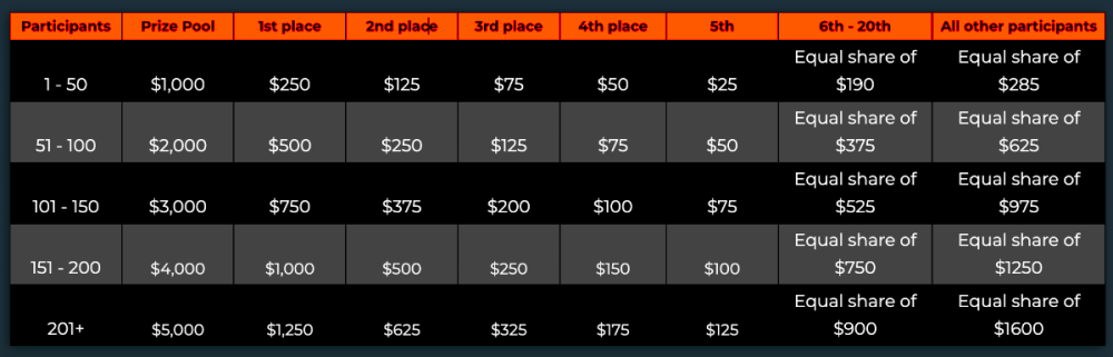 8. $5k Prestige Crash Challenge #93 DURATION: 16th JUNE - 23rd JUNE 10:00 am UTC Dear valued VIPs, we are delighted to have you back for another thrilling week of challenges and excitement. Brace yourselves for the highly anticipated Prestige Challenge, where you will put your Crash skills to the ultimate test. This week's tournament will revolve around achieving the highest multipliers, promising an adrenaline-pumping experience like no other. With straightforward rules and an incredibly enticing prize pool, we assure you that the stakes are higher than ever. Without further delay, let us immerse ourselves in this extraordinary event. Please review the provided terms and conditions carefully: What's the Challenge? Win the highest multiplier you can on BC.Game's in-house game, Crash. If there is a tie, the player with the higher average bet amount (in USD) shall be the winner. If there is a tie in the amount and payout, the one who posted or edited his post first will be considered in the Ranking. How to Enter To enter, copy the link of the bet you'd like to submit. Once you've copied it, paste it as a reply to this thread like so: Link: https://bc.game/#/sd/1161RODDK14GLV In the same post, upload a screenshot of your win by clicking the game ID WITH VIEW IN USD mode ENABLED (accessible at the bottom of dropdown menu for your wallet up top. This way, we can ensure that your bet indeed met the minimum requirement at the time of placing it: Link: https://bc.game/#/sd/1161RODDK14GLV Minimum VIP Minimum VIP 4 with phone verified will be eligible! Minimum Payouts Minimum payout to qualify is 20x Minimum Bet Size $0.2 USD equivalent Eligible Coins All cryptocurrencies are eligible (excepting JB) Available Prizes GENERAL TERMS Please combine all of your hits together in a SINGLE post. Edit your existing post for additional hits, don't create a new post. Each eligible entry must have the Bet Slip URL, failure to include it will disqualify participation in the event. Bet Slip image is not mandatory. Bets must be posted within 24 hours of placing bet in order to keep things fair for everyone. Bets must be made during the specified time window stated above. This thread will lock automatically when the time period is over. One (1) entry per household. Anyone found attempting to win multiple prizes will be disqualified from this challenge as well as all future challenges. Failure to follow instructions will result in your submission being null and void. By entering this challenge, you acknowledge that BC.Game has the final decision on results and placement. Payouts will be distributed after the event is finished. Please note that it could take anywhere between 24 hours to 7 days after the completion of the event.