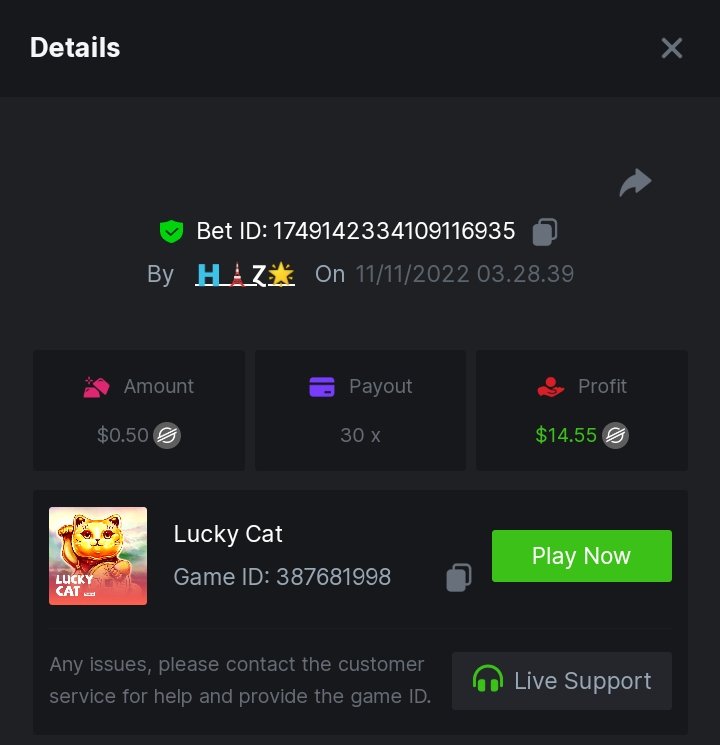 LUCKY CAT (30X) https://hash.game/#/sd/10WWZOK5UCFKSZ