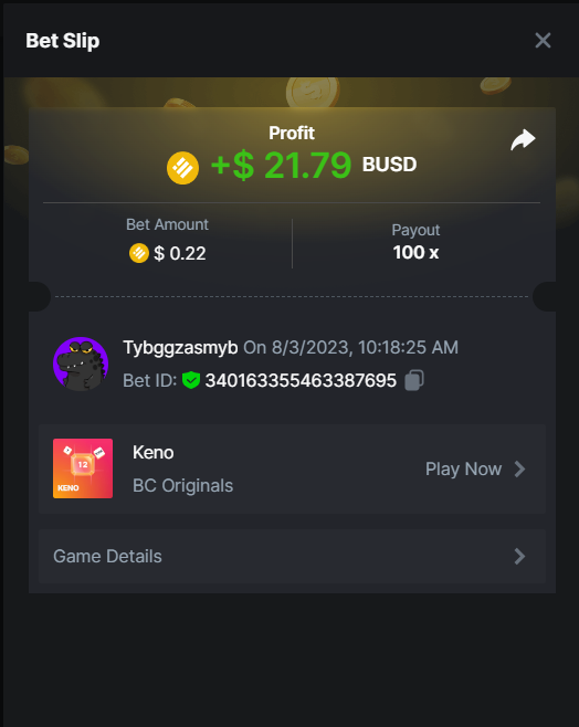 100x - https://bcgame.top/#/sd/11F6I014ONR577