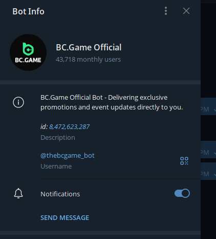 But from your screenshots I see you interacted with some Telegram bot/user that's passing off as the genuine BC.Game. Bro, you got scammed. That bot isn't from the official BC.Game