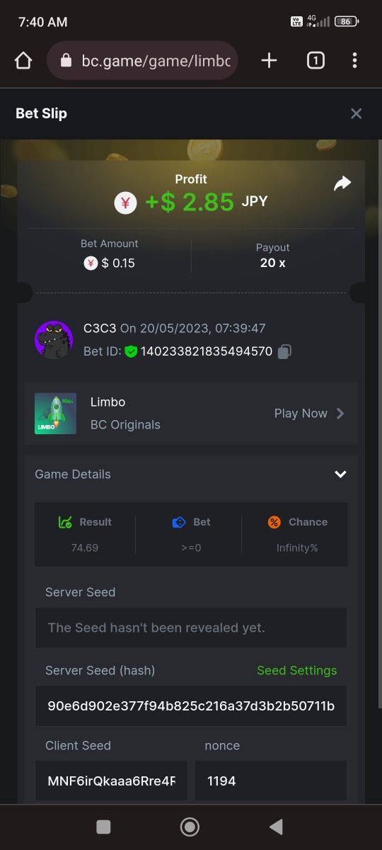 C3C3 replied to BCGame_Maxim's topic in VIP Challenges
