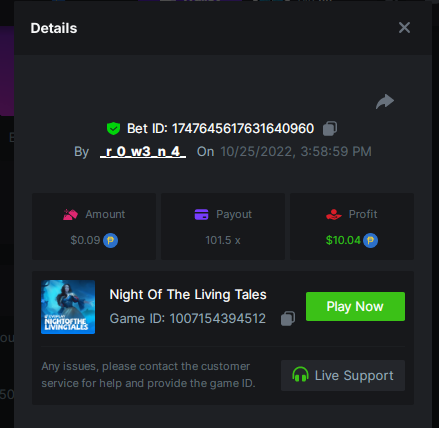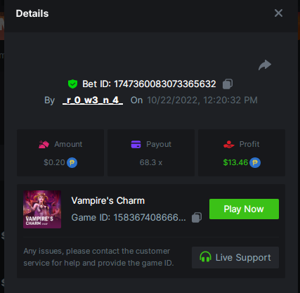 13. 100 Zombies - $0.20 https://bc.game/#/sd/10UXUX355ACBGZ Book of Vlad - $0.10 https://bc.game/#/sd/10UXH0IIU4SHZN Cyber Wolf - $0.10 https://bc.game/#/sd/10UXHER0L512XF Dia De Los Muertos - $0.10 https://bc.game/#/sd/10UXU3KFF380ER Hell Hot 20 - $0.20 https://bc.game/#/sd/10UXVEWG2EZ2MR Magnum Opus - $0.10 https://bc.game/#/sd/10UXW0KLVNPS7N Minotaur - $0.10 https://bc.game/#/sd/10UXHVHA1053PV The Vampires - $0.10 https://bc.game/#/sd/10UXT8CWULG2KZ Voodoo - $0.10 https://bc.game/#/sd/10UXT5SOO3KZ6B