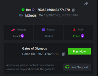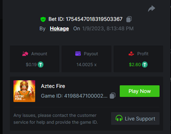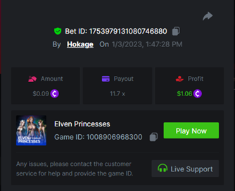 Wild Spin - 33.40x https://bc.game/#/sd/111RYOGM9KOMXF Dragon’s Element - 48.50x https://bc.game/#/sd/111RZ47WT3RUHF Aztec Coins - 10.64x https://bc.game/#/sd/111RZGYO40MADV Lucky Cat - 32.00x https://bc.game/#/sd/111S130ZWFVAJ7 Pirate’s Map - 15.00x https://bc.game/#/sd/111S1NTT490LJN
