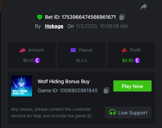 Wolf hiding bonus buy - 10.2x https://bc.game/#/sd/110KXOX7CL1MVN Elven Princesses - 11.70x https://bc.game/#/sd/110LA5MRKX14IB Mega Greatest Catch - 23.50x https://bc.game/#/sd/110LB7H0LYQ2OJ Cycle Of Luck - 52.00x https://bc.game/#/sd/110LBPDRA9NOR7 Collapsed Castle - 21.40x https://bc.game/#/sd/110LC5HXA2L05V -