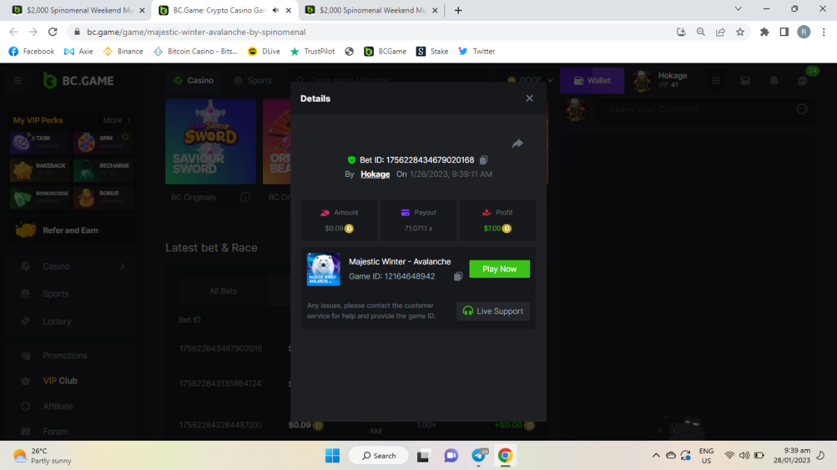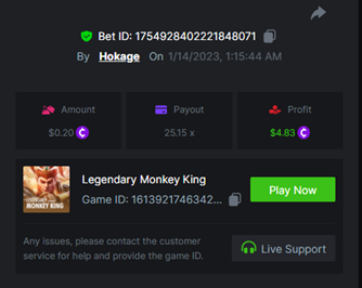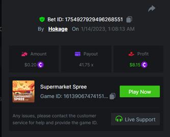 Wild Bounty Showdown - 32.25x https://bc.game/#/sd/111B6F107027F7 Candy Bonanza - 165.90x https://bc.game/#/sd/111B7658VJJ7DF Leprechaun Riches - 104.35x https://bc.game/#/sd/111ANT1JW5FSIB Spirited Wonders - 42.45x https://bc.game/#/sd/111B7UMC4I3H1V Butterfly Blossom - 96.25x https://bc.game/#/sd/111B848S23KR9V Supermarket Spree - 41.75x https://bc.game/#/sd/111B8D4HVE3K7N Wild Bandito - 96.20x https://bc.game/#/sd/111B8N4ZXQG36B Destiny of Sun and Moon - Prosperity Fortune Tree - 69.00x https://bc.game/#/sd/111B92CQP9XBMB Legendary Monkey King - 25.15x https://bc.game/#/sd/111B8U7CEQSVTF
