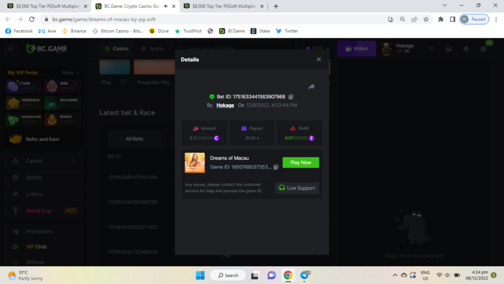 @BCGame_Mat can u clear, says: post must be open bets.. shoudln't we post once the bet won..else we will be posting all our open bets..also, it's not a win yet 2nd, once WON, there is no share icon anymore to get bet link we need to post screenshot and bet ID only