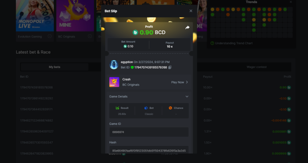 https://hash.game/#/sd/11VHXSXWYKHWUZYour other three bets alone won't secure a spot on the winners' list. To qualify, you need a minimum of four points, one from each category. Enabling +2FA, verifying your phone, and verifying your email earn you one point. So your score is less than 5 points.