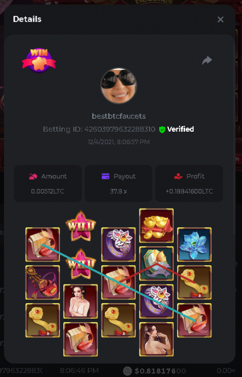 5. bestbtcfaucets Betting ID: 1718671566808651527 Verified 12/9/2021, 1:28:51 PM bestbtcfaucets Betting ID: 1718672537527708544 Verified bestbtcfaucets Betting ID: 1718673104522014471 Verified 12/9/2021, 1:53:18 PM