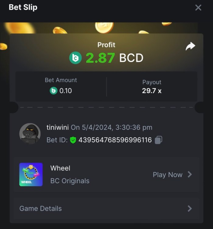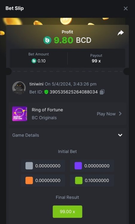 tiniwini replied to BCGame_Maxim's topic in VIP Challenges