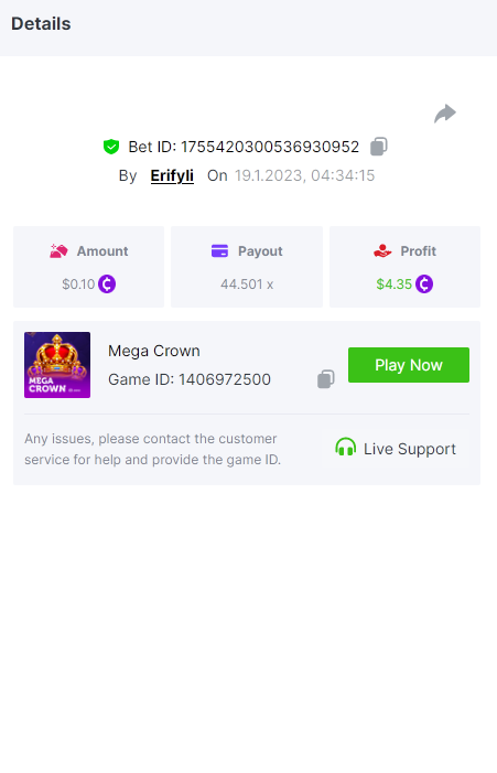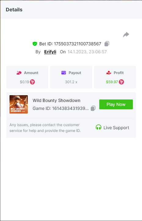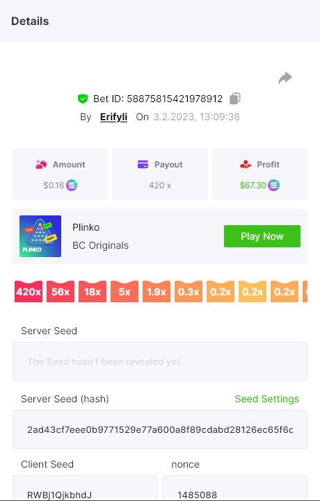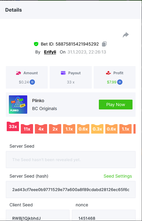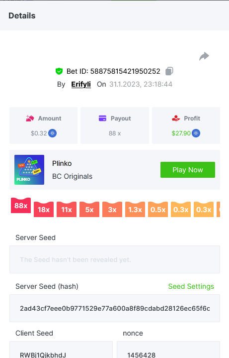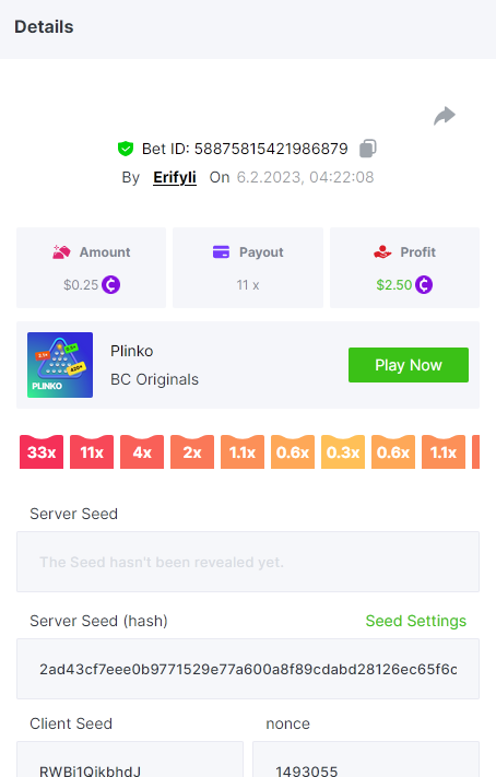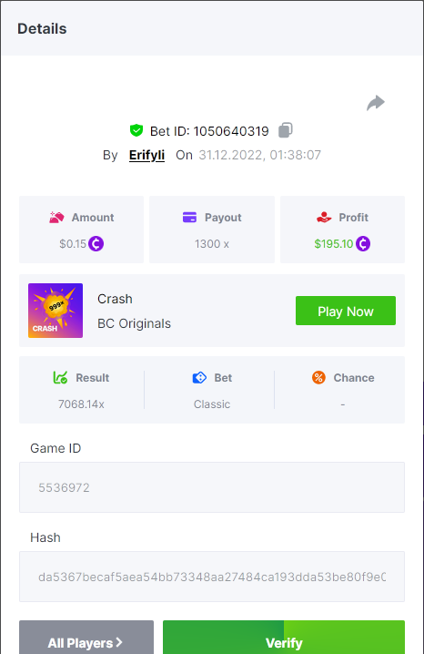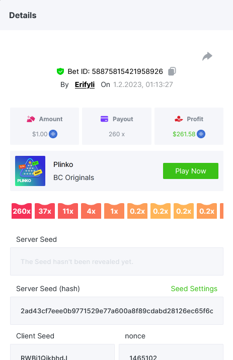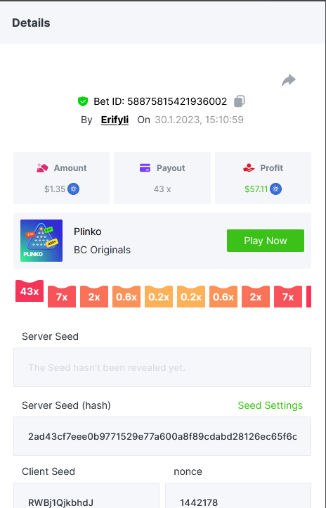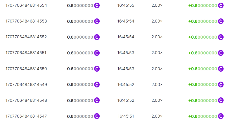 6. Bounty ? https://bc.game/#/sd/1123A7FXI98S9F The exact amount paid in the game was 50x but the multi shown is 0.05 higher than in reality. Not sure if this counts as bounty. https://bc.game/#/sd/1123L1X3SF7YTV https://bc.game/#/sd/111XF58ISYZR4J https://bc.game/#/sd/111X8MPZ776SYB https://bc.game/#/sd/111XAGX5V8YMMR https://bc.game/#/sd/1121WOEHI0AT5F https://bc.game/#/sd/111XKLL6U67THV