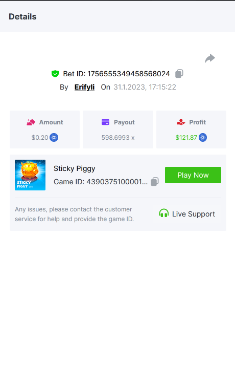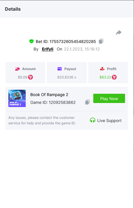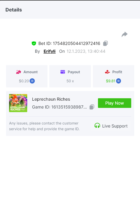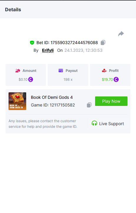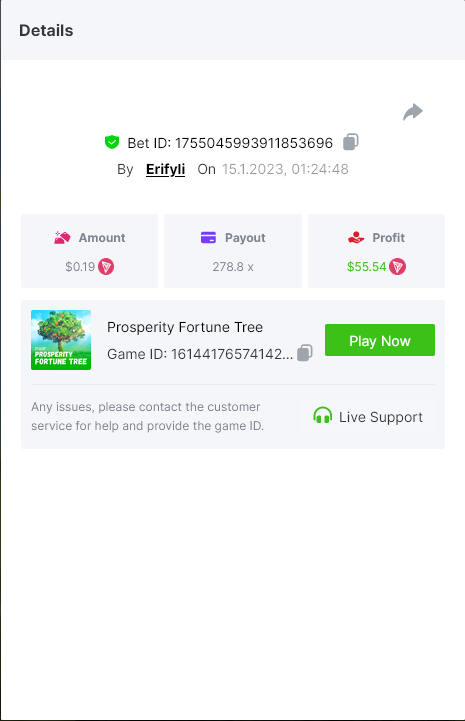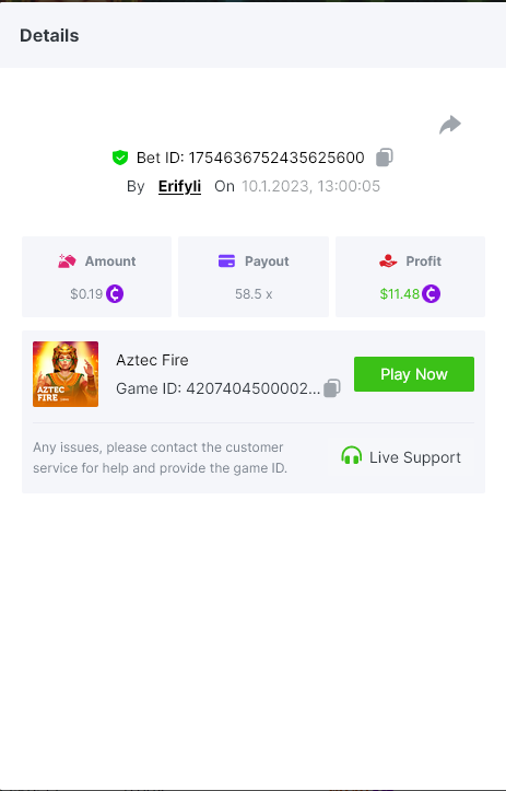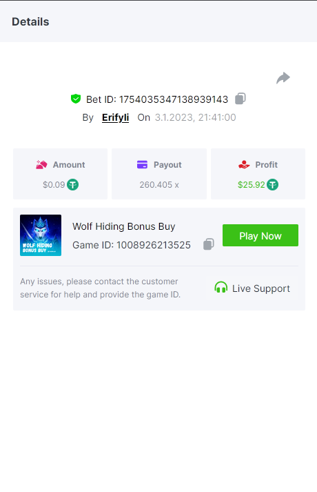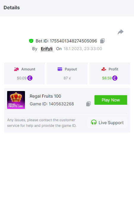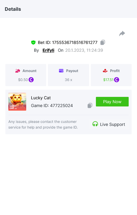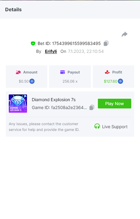 6. Bounty ? https://bc.game/#/sd/1123A7FXI98S9F The exact amount paid in the game was 50x but the multi shown is 0.05 higher than in reality. Not sure if this counts as bounty. https://bc.game/#/sd/1123L1X3SF7YTV https://bc.game/#/sd/111XF58ISYZR4J https://bc.game/#/sd/111X8MPZ776SYB https://bc.game/#/sd/111XAGX5V8YMMR https://bc.game/#/sd/1121WOEHI0AT5F https://bc.game/#/sd/111XKLL6U67THV