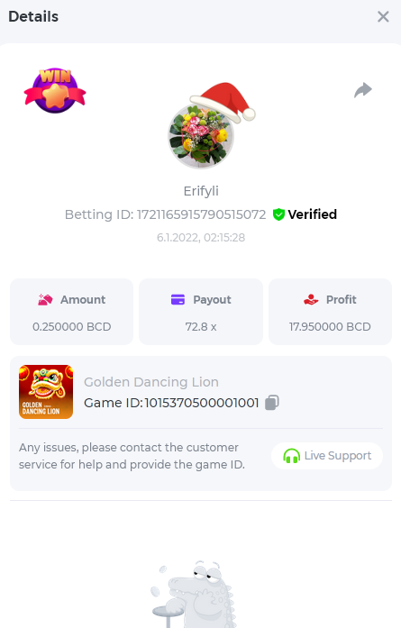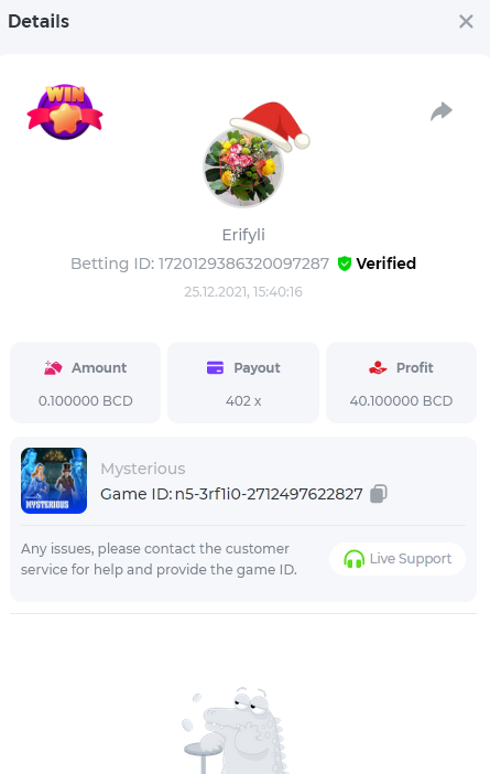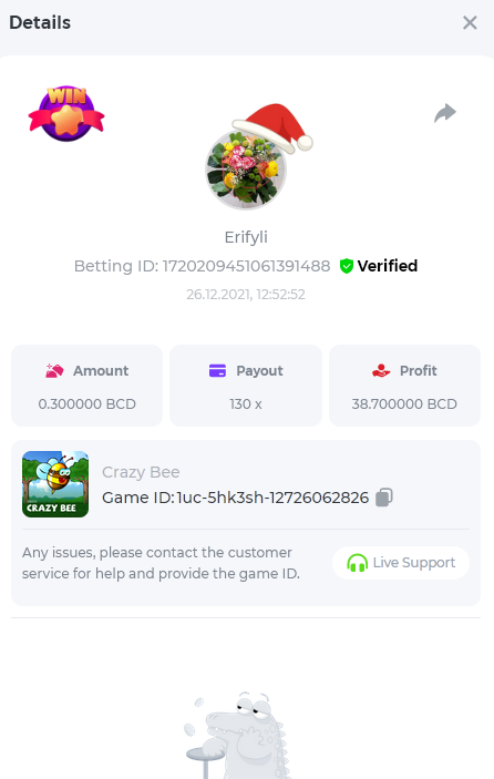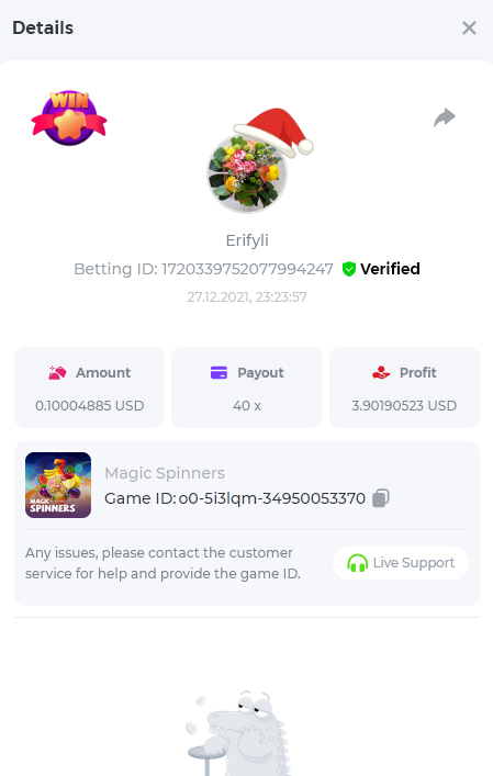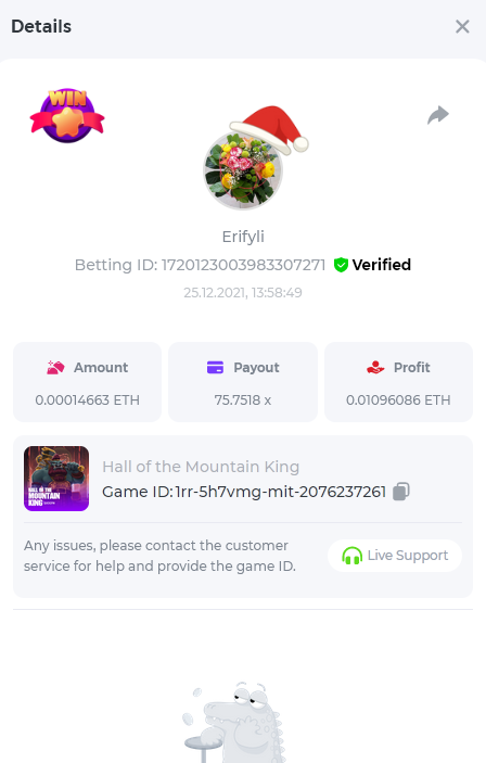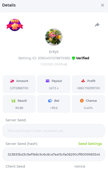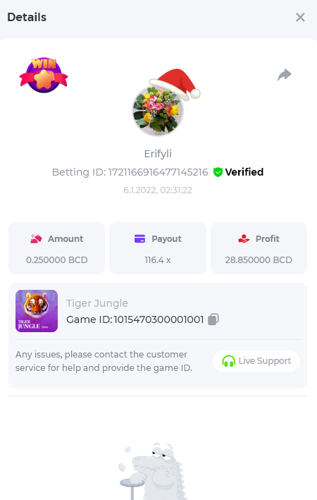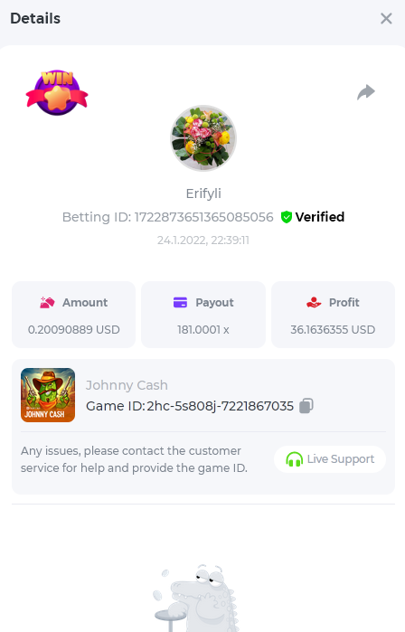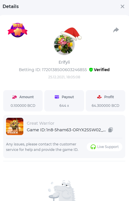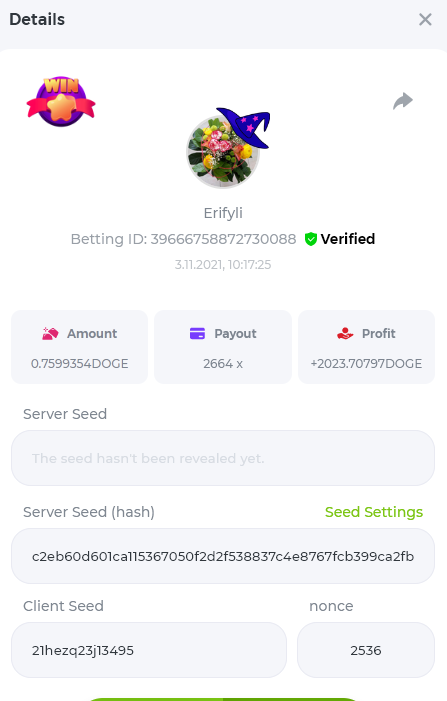Betting ID: 1721163191263215744 240,25x Betting ID: 1721165915790515072 72,80x Betting ID: 1721167849602742791 309,10x Betting ID: 1721166916477145216 116,40x
