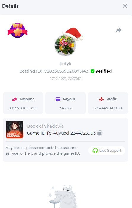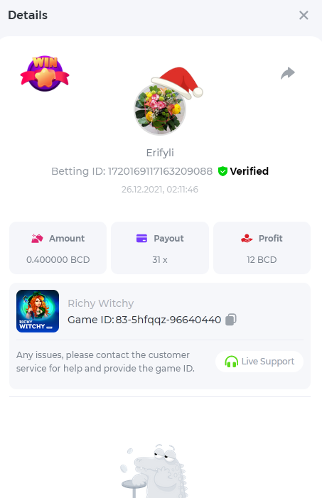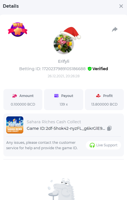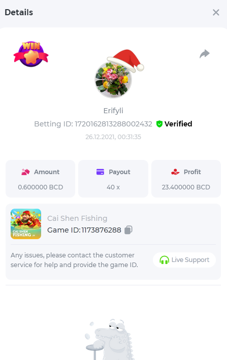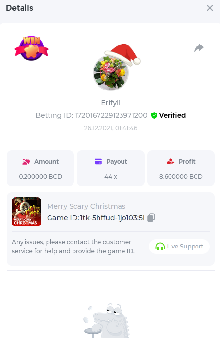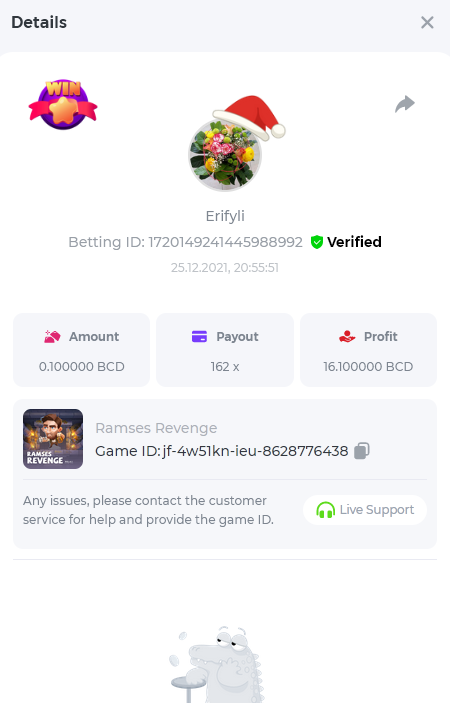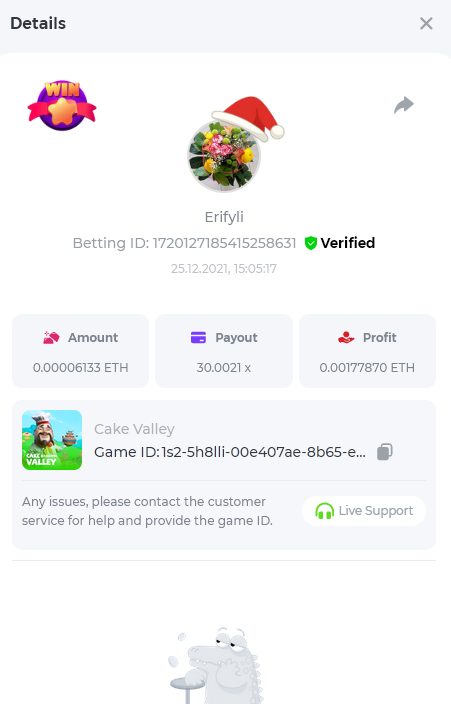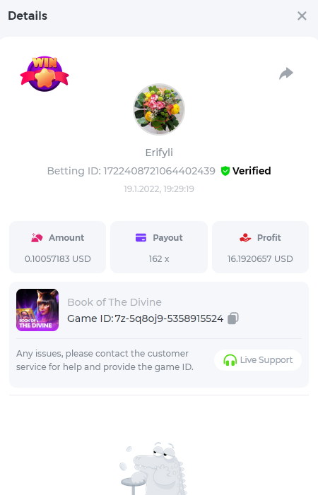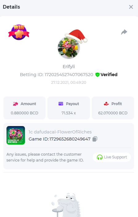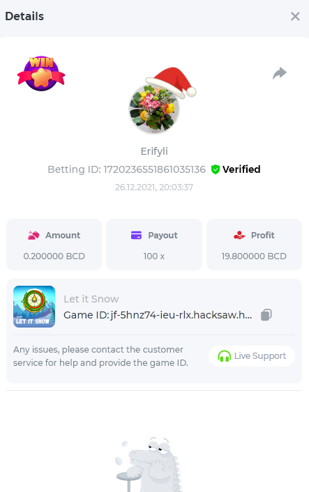 Betting ID: 1721163191263215744 240,25x Betting ID: 1721165915790515072 72,80x Betting ID: 1721167849602742791 309,10x Betting ID: 1721166916477145216 116,40x