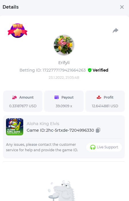 Betting ID: 1722873651365085056 181x Betting ID: 1722474660409572103 207x Betting ID: 1722776475280311424 156x Betting ID: 1722777179421664263 39.09x Betting ID: 1722780166771201287 21x