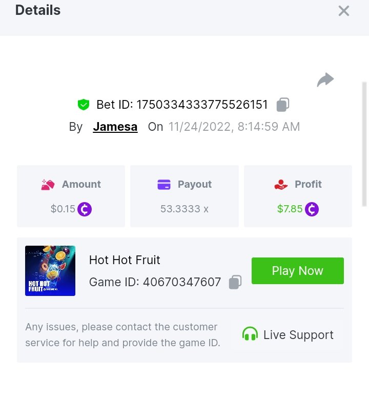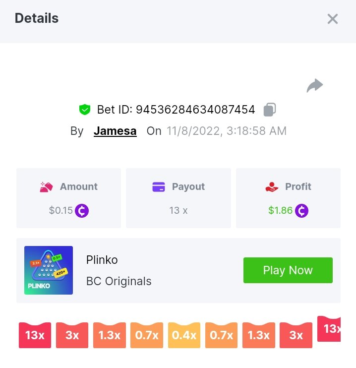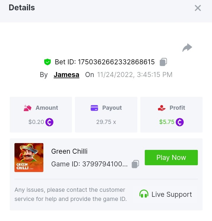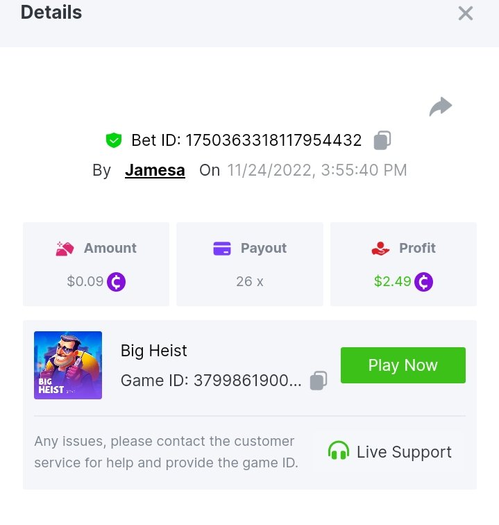 Bet history page for crash not working right now so I wont be able to trace my bet slip but I have a bill of transaction proof. Bet amt=$0.17 BCD Payout=20x
