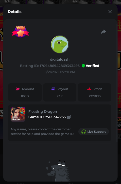 15. Starts: 10:00, October 4 GMT Ends: 10:00, October 11 GMT Welcome back VIPs! This week's challenge games are CLASSIC DICE and ULTIMATE DICE - We also have a few updates to the prizes in order to accommodate a second challenge (Prestige). First place prize has been increased to $1,250! What's the Challenge? Hit as many of the following 22 payouts on our in-house CLASSIC DICE or ULTIMATE DICE . You must hit a MINIMUM of 5 payouts to qualify: 10x - 20x - 30x - 39.9193x - 40.0809x - 50x - 100x - 150x - 200x - 250x - 330x - 450x - 550x - 660x - 990x - 1100x - 1237.5x - 1650x - 1980x - 3300x - 4950x - 9900x Please Note - 40x was replaced with 39.9193x and 40.0809x as there is no 40x payout for dice. Sorry that was my fault! Each payout you hit counts as 1 point, with a maximum of 22 points. If there is a tie, the player with the higher average bet amount (in USD) shall be the winner. The payouts must be the EXACT payouts listed above. Must be a WINNING bet. MASTER BONUS - Hit 9,900x with valid bet amount to receive $100 no matter if or where you place on the podium! Minimum VIP Tier Must be VIP08 or higher in order to enter this challenge. Minimum Bet Size $0.35 USD equivalent (please check the individual coin amounts below) - Bets made below this amount will not count. Eligible Coins All coins are eligible (excluding JB) Available Prizes 1st Place....,.. $1,250 2nd Place..... $600 3rd Place...... $300 4th-20th ...... $50 /ea How to Enter To enter, copy the bet ID of the bet you'd like to submit Once you've copied it, post it as a reply to this thread like so: Betting ID: 1708854428417660423 In the same post, upload a screenshot of your win by clicking the game ID WITH VIEW IN USD mode ENABLED (accessible at the bottom of dropdown menu for your wallet up top. This way, we can ensure that your bet indeed met the minimum requirement at the time of placing it: Please combine all of your hits together in a SINGLE post. Edit, don't create a new post. Bets must be posted within 24 hours of placing bet in order to keep things fair for everyone. Bets must be made during the specified time window stated above. This thread will lock automatically when the time period is over. One (1) entry per household. Anyone found attempting to win multiple prizes will be disqualified from this challenge as well as all future challenges. Furthermore, you will go on the WALL OF SHAME for all to see that you are a scam. Scam 4 Scam. Failure to follow instructions will result in your submission being null and void. By entering this challenge, you acknowledge that BC.Game has the final decision on results and placement. Payouts will be made within 48 hours of challenge completion, please be patient, we promise you that we haven't forgotten. We check and double check to make sure the rightful winners receive their prize. Don't die. Dying constitutes as a withdrawal from the challenge on the players end, meaning you're disqualified. So you should most likely wait until after the challenge is over. Or just don't. Good luck to everyone, look forward to seeing who comes out on top this week!