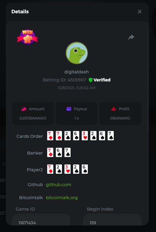 11. Starts: 0:00, October 12 GMT Ends: 0:00, October 19 GMT Welcome back VIPs! This week's challenge game is our in-house Blackjack . What's the Challenge? Draw as many cards as possible without going over 21 for both dealer and player. In this example, the total would be 8 points, as there were a total of 8 cards drawn. Each card counts as 1 point. If there is a tie, the player with the higher average bet amount (in USD) shall be the winner. Splitting is allowed. Must be a WINNING bet. Minimum VIP Tier Must be VIP08 or higher in order to enter this challenge. Minimum Bet Size $0.50 USD equivalent (please check the individual coin amounts below) - Bets made below this amount will not count. Eligible Coins All coins are eligible (excluding JB) Available Prizes 1st Place....,.. $1,250 2nd Place..... $600 3rd Place...... $300 4th-20th ...... $50 /ea How to Enter To enter, copy the bet ID of the bet you'd like to submit Once you've copied it, post it as a reply to this thread like so: Betting ID: 1708854428417660423 In the same post, upload a screenshot of your win by clicking the game ID WITH VIEW IN USD mode ENABLED (accessible at the bottom of dropdown menu for your wallet up top. This way, we can ensure that your bet indeed met the minimum requirement at the time of placing it: ADDITIONALLY, YOU MUST COPY+PASTE THE VERIFICATION LINK BY CLICKING ON THE VERIFY BUTTON Please combine all of your hits together in a SINGLE post. Edit your existing post for additional hits, don't create a new post. Bets must be posted within 24 hours of placing bet in order to keep things fair for everyone. Bets must be made during the specified time window stated above. This thread will lock automatically when the time period is over. One (1) entry per household. Anyone found attempting to win multiple prizes will be disqualified from this challenge as well as all future challenges. Furthermore, you will go on the WALL OF SHAME for all to see that you are a scam. Scam 4 Scam. Failure to follow instructions will result in your submission being null and void. By entering this challenge, you acknowledge that BC.Game has the final decision on results and placement. Payouts will be made within 48 hours of challenge completion, please be patient, we promise you that we haven't forgotten. We check and double check to make sure the rightful winners receive their prize. Don't die. Dying constitutes as a withdrawal from the challenge on the players end, meaning you're disqualified. So you should most likely wait until after the challenge is over. Or just don't. Good luck to everyone, look forward to seeing who comes out on top this week! MASTER BONUS - Win a round with the cards 2, 3, 4, 5, 6 drawn for either side to win a guaranteed $100 regardless of podium placement! Cards do not have to be drawn in order, must be exactly the 5 cards stated above to count for either player or dealer (not combined), no more no less. Must be a WINNING bet. Minimum bet still applies fo this bonus.