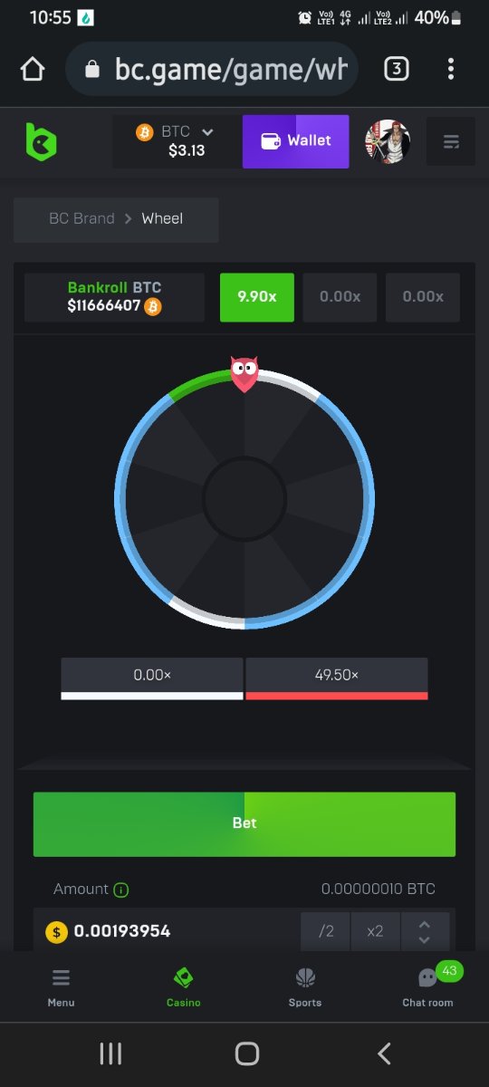 2. some wheel game got error I bet high risk but shows low risk instead.