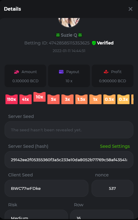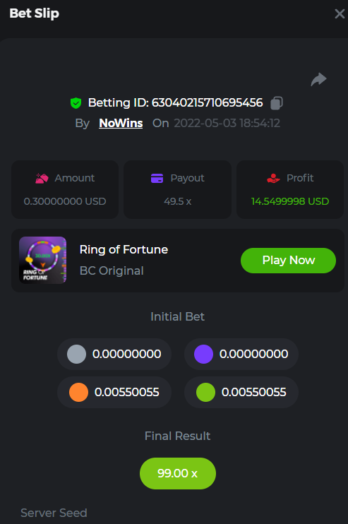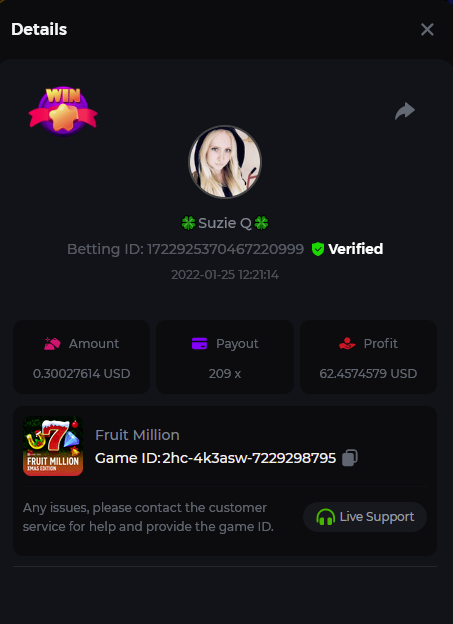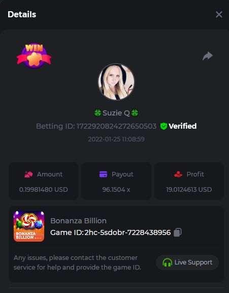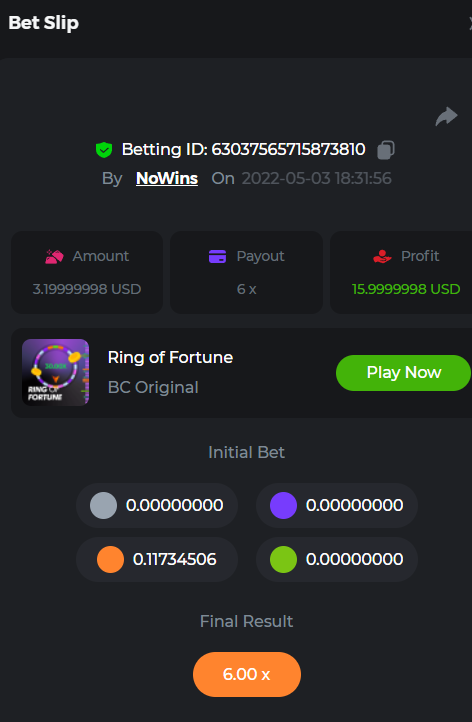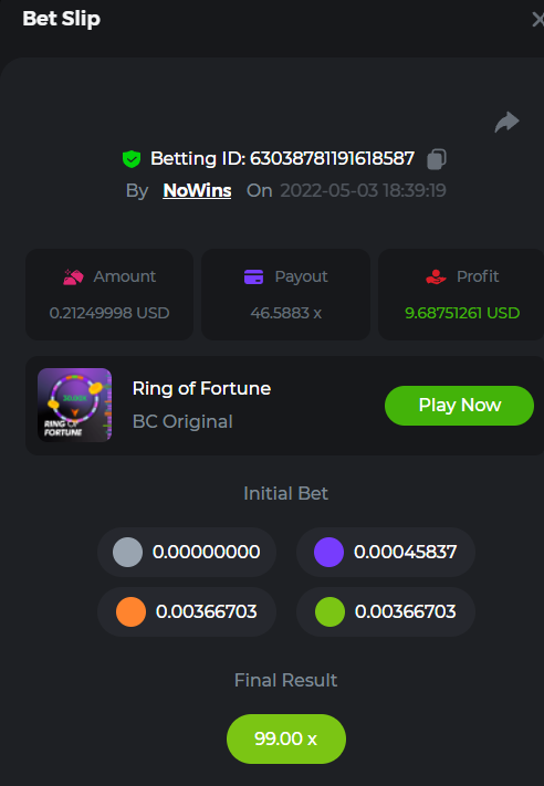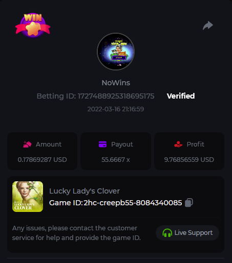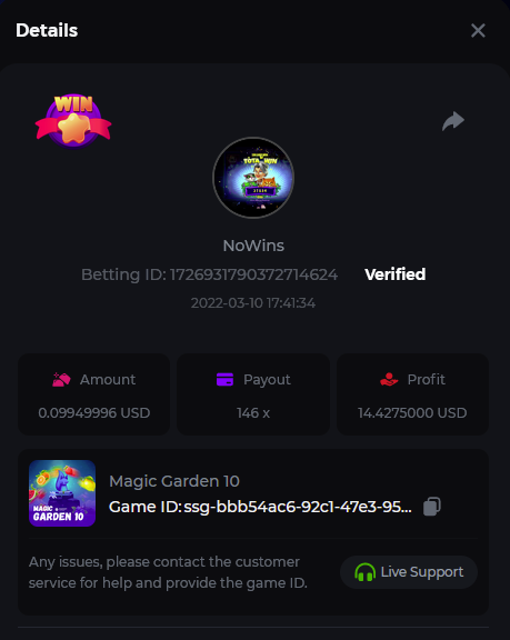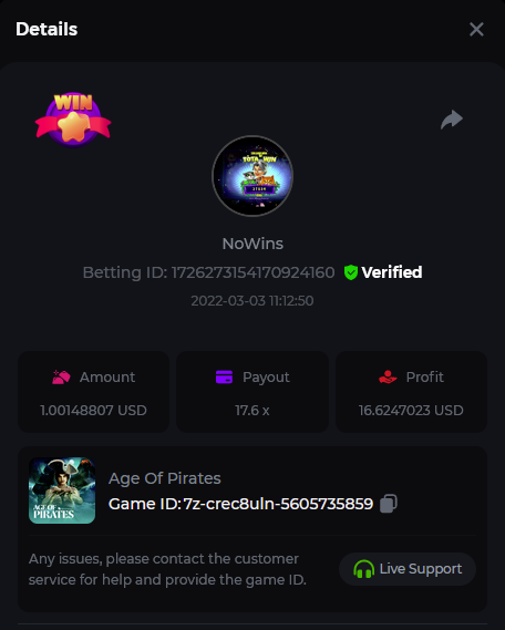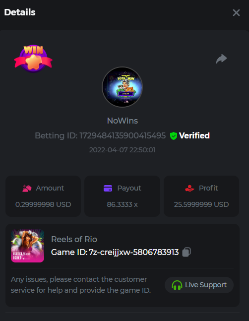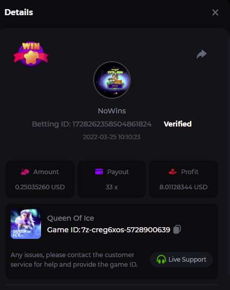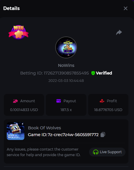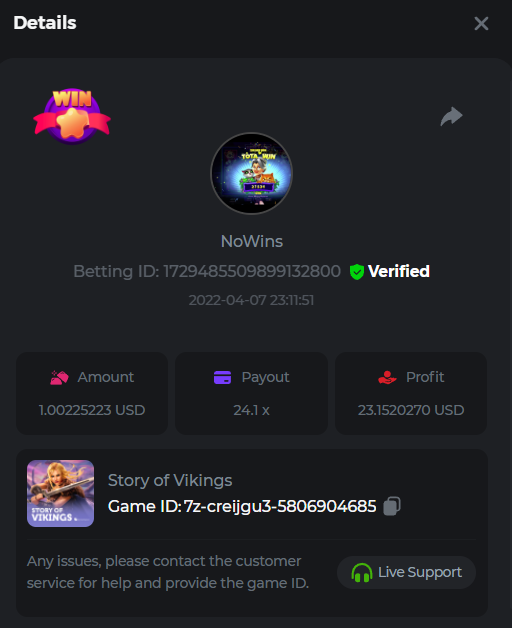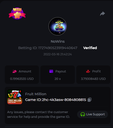 Book of Tribes - Bet ID: 1724412718370129671 Wild Fruits - Bet ID: 1724415618767348864 (I hate games w/o free spins / Bonus game) Book of the Divine. Reloaded - Bet ID: 1724417315092041735 This is the closest I got to the bounty: 129.5 x -