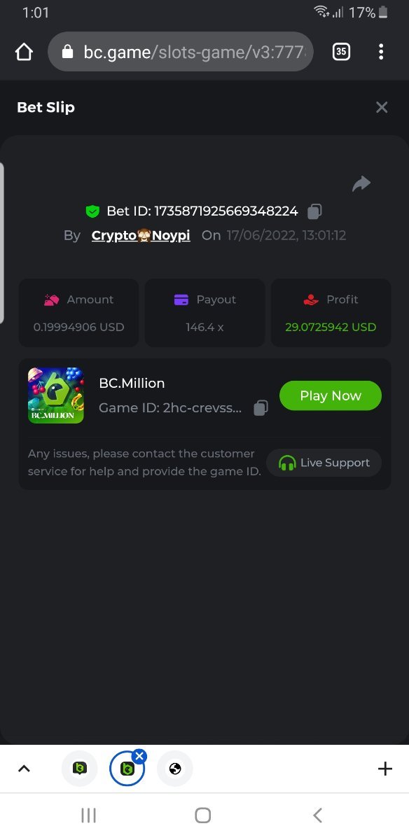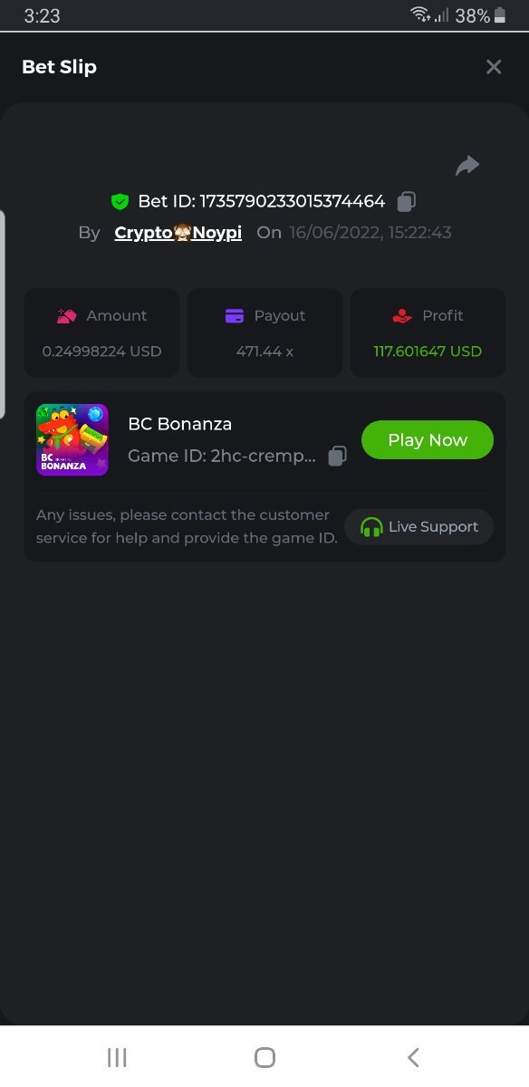 2. Bounty x50 (Mega Drago) https://bc.game/#/sd/10X20U4A59AKGJ Pirates Map 133.4x https://bc.game/#/sd/10WVRI467OUHAR Mistress of Amazon 147.5x https://bc.game/#/sd/10WW6TIHX3VTHV Arabian Tales 114.1x https://bc.game/#/sd/10WWA82SXWDU6R Mega Drago 100.66x https://bc.game/#/sd/10WWFPX6VQX5W3 Lucky CaT 210x https://bc.game/#/sd/10WX0OFSUEWMXF Chilli Heat 836x https://bc.game/#/sd/10WY7EFR5SA7TF Leprechauns Coin 173.16x https://bc.game/#/sd/10WYMR6C0T68LV Frozen Mirror https://bc.game/#/sd/10X4BO7T4RUM8J Ways of the Gaul 235x https://bc.game/#/sd/10X1ZO9KHM3H1V Wild Spin 211x https://bc.game/#/sd/10WZHB9DZLE6TV Wild Crown 553x https://bc.game/#/sd/10X1S2CLTW7MS3