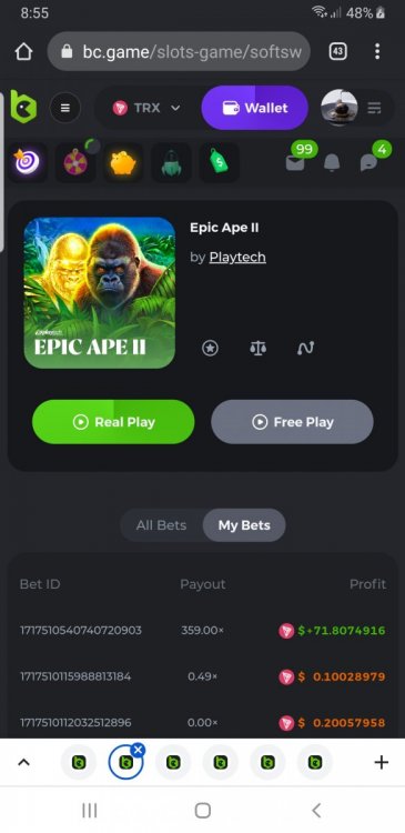 Johnny Cash 439.5 Betting ID: 1722427476926087943 Aloha King Elvis 131.19x Betting ID: 1722462397289604224 Bonanza Billion 187.6x Betting ID: 1722570472804359943 Fruit Zero 10.8x Betting ID: 1722687947688382471 Book of Cat 169.3 Betting ID: 1722783255148464512 Bounty Betting ID: 1722451866989852679 -