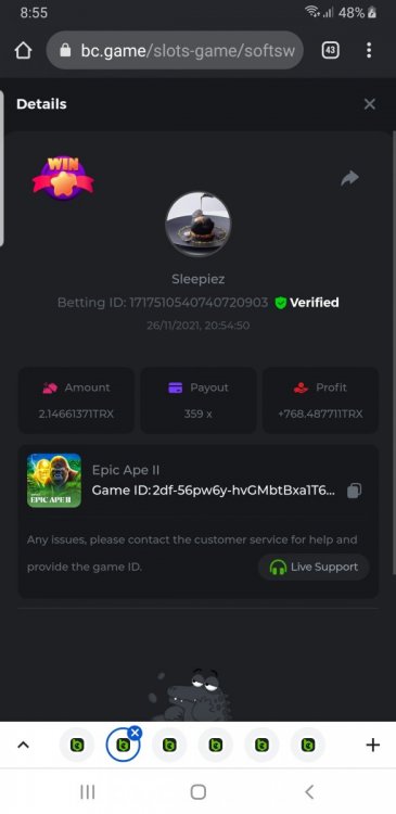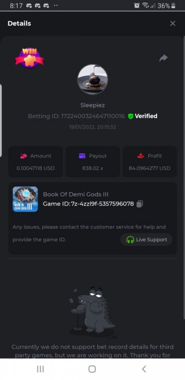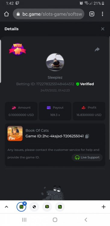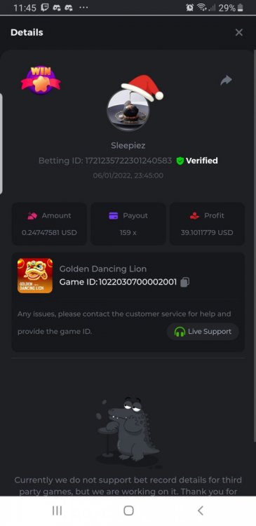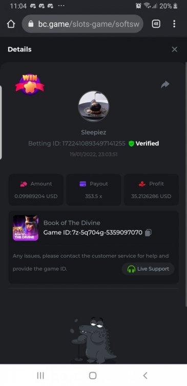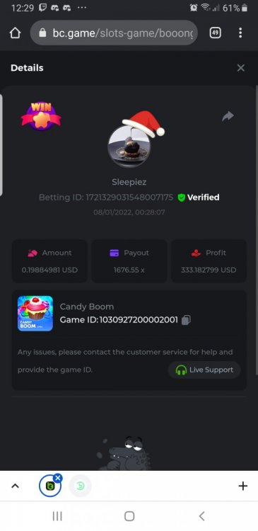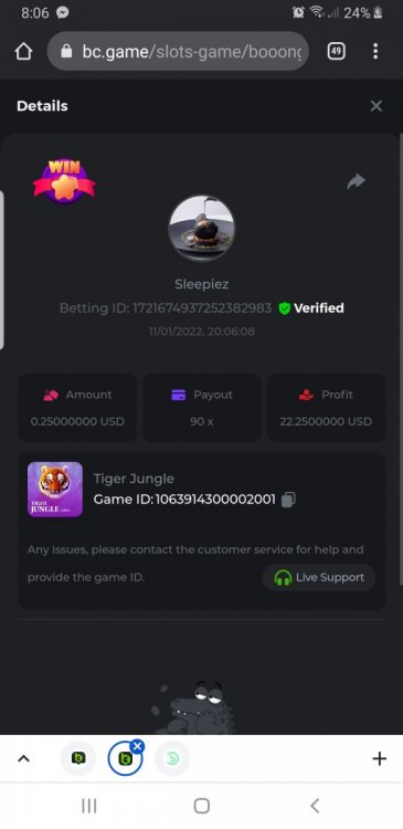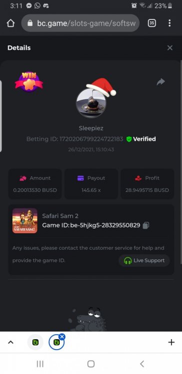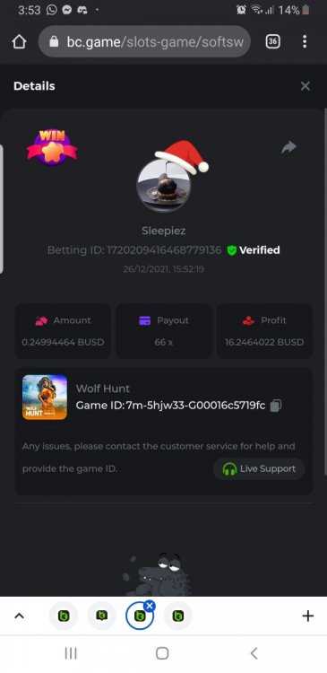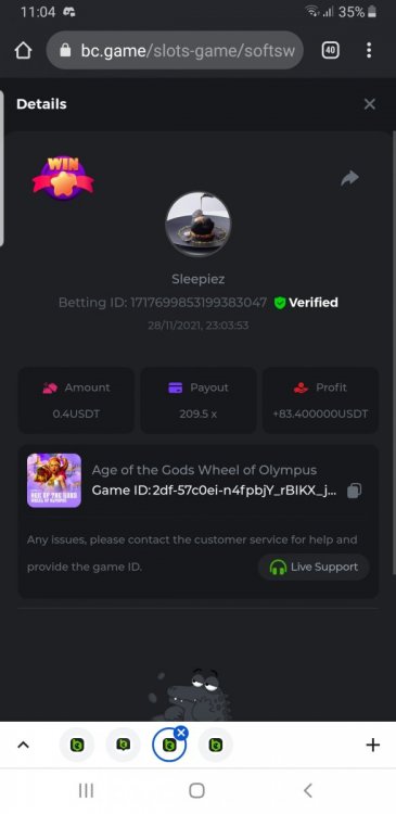 Sleepiez BGaming Candy Monsta (120.5x) Betting ID: 1719771673415153415 BetSoft Safari Sam2 (145.65x) Betting ID: 1720206799224722183 GameArt WolfHunt (66x) Betting ID: 1720209416468779136 NolimitCity Tombstone(145x) Betting ID: 1720210419231831047 Quickspin Most Wanted 3(106.88x) Betting ID: 1720214130037355392 Playson Book of Gold2 (114.75x) Betting ID: 1720237312263717504 Habanero Betting ID: 1720240090905229184 Pragmatic Xmas Carol 92.4x Betting ID: 1720297147592160519 Tiresome event playing so many slot just for 2000cash prize for 10player. Can you atleast have some automated scoring script so we dont need to keep posting one by one.