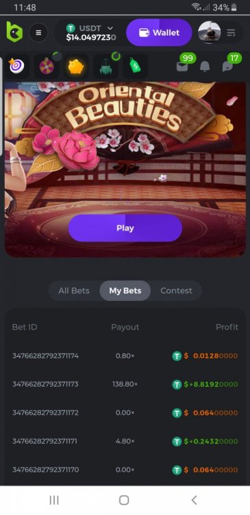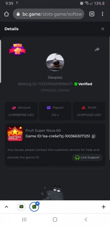 Penalty shootout 30.72x Betting ID: 1723113558649895431 Mine Field 14.79x Betting ID: 1723114191062275200 Epic Gladiator 200x Betting ID: 1723211766109674368 Fruit Super Nova 212x Betting ID: 1723131516219198471 Bounty 34x Fruit super nova Betting ID: 1723481458606112640 -