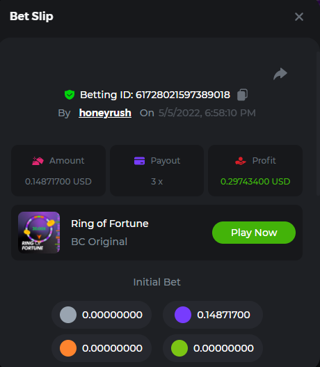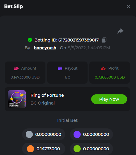 Ring of Orange Weekly Challenge Periode 17=24 Mei 2022 Challenge dengan mencari strike payout 6x / orange terpanjang di game Ring of Fortune Peraturan permainan: Ring of Fortune Point: Cari Strike payout 6x / Orange terpanjang minimal 3 strike Post link dan screenshoot betid (wajib) bisa post berulang dan akan terakumulasi Jangan lupa screenshoot ini juga ( wajib ) User level 3 ke atas no multi account Koin bebas selain bj koin Apabila skor sama, maka peringkat tertinggi berdasarkan post yg awal INDONESIA USER Only Bet berlaku mulai tgl 22 mei 2022 jam 11,57 am dan max post 24 jam dari semenjak bet di buat. Challenge berakhir 24 Mei pukul 19.00 pm Hadiah: 1. 12 bcd shitlink 2. 8 bcd shitlink 3. 5 bcd shitlink 4-10. @2 bcd shitlink 10-15 @1 bcd shitlink Keputusan juri tidak dapat di ganggu gugat