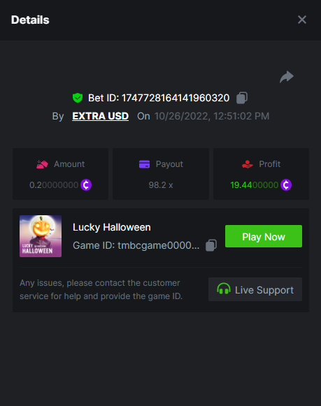Helloween Bet ID: #1747727135243976576 https://bc.game/#/sd/10VUA6HGCNKJKJ Lucky Hallowen Bet ID: #1747728164141960320 https://bc.game/#/sd/10VUBHIX13V5ZN Halloween Jack Bet ID: #1747730187205987079 https://bc.game/#/sd/10VUD6LNTPFDAR Book Of Pumpkin 1747813452150033280 https://bc.game/#/sd/10VWN83DS91VKJ