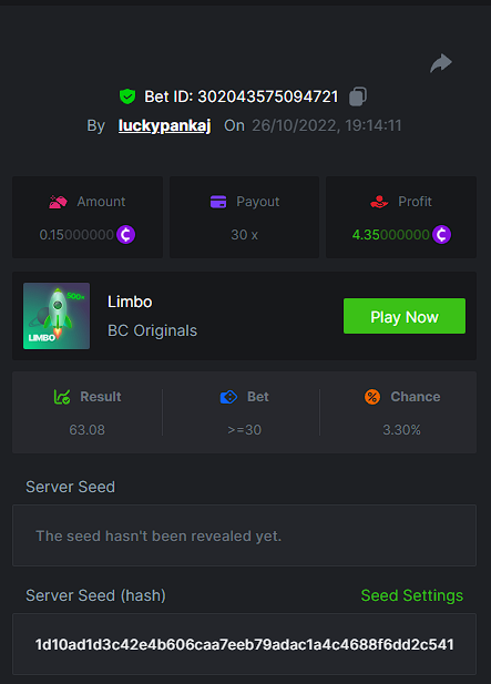 luckypankaj replied to BCGame_Ewa's topic in Past Challenges