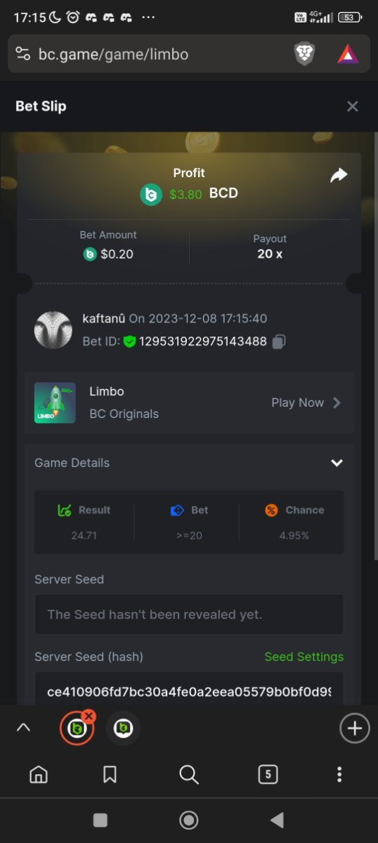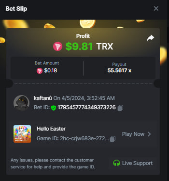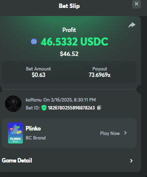 Easy completed: 11/11 Medium completed: 11/11 Hard completed: 11/11 Total completed: 33/33 Easy Deposit at least $50 USD order id: A-1826772919619803028 txid; 8bc5b74cd34e637de638209c51e2ed1f85987b4dcb98b0b022c269b66c4ce66a Follow BC.GAME on Instagram, take a screenshot, and share it with your IG username in the forum! @andersson4416 Share a BC.Game photo or video on your Instagram, tag us #bcgame, and drop the link with your IG username in the forum! https://www.instagram.com/p/DHRJLO0IRWKJeZ93mJxLIc4Hii0yPo-eTA9LGA0/ Follow BC.GAME Twitter Take a screenshot of the following and include your Twitter username in the forum. Like and Retweet BC.GAME's latest post and tag at least 3 of your friends. Take a screenshot and include your Twitter username in the forum. @norwesc1 Follow BC.GAME Facebook. Take a screenshot of the following and include your FB username in the forum. @philip Andersson Win a payout of 20x on the original Limbo game. https://bc.game/game-detail/1826772581589276195 Win a Sports bet with a minimum payout of 1.5x odds (Only for single bets). $20 basebet id: 2518634806175212057 Get a 20x multi in the Arabian Secret slot game. https://bc.game/game-detail/1826774273486895649 Get a 30x multi in the Sugar Fiesta 1000 slot game. https://bc.game/game-detail/1826775790355304227 Activate 2FA security on your BC.Game account. Take a screenshot of 2FA and keep it active till the result is announced. Medium Deposit At least $100 USD order id: A-1827391788888210346 txid: 17d607b0c1744b38fedd5daf1f84185323fb978da9acd4a6f4e9368bf426ac5b Get 50x in the Crash game. https://bc.game/game-detail/1826774341540379012 Get a payout of 73.6x on the original Plinko game Risk-High, Row-10. https://bc.game/game-detail/1826780255898878243 BC original Roulette Single game Win 36x on the on number 0. https://bc.game/game-detail/1826780745485731361 Get 50x in the BC original Starshine Princess 1000 slot game. https://bc.game/game-detail/1826776020089892899 BC original Stellar Rush game Win 50x in the. https://bc.game/game-detail/1826773872535639331 Win a 96.96x Keno bet by selecting numbers 1, 14, 22, 28 (Risk: Medium). https://bc.game/game-detail/1826773213339452195 Get 50x in the Poker Ways slot game.* https://bc.game/game-detail/1826777388308230435 BC original Wukong slot game get 50x multi. https://bc.game/game-detail/1826776665318515235 Buy at least 30 BC Lottery tickets using $BC Token. -or- Buy at least 2 BC Porsche lottery tickets using $BC Token send screenshot in forum post. Win a sports parlay/combo bet with at least 3 matches and a 2.5x minimum payout to qualify. ticket id: 2513131965474025926 HARD Win on Wheel 48x or higher - Row 50, Segment High. https://bc.game/game-detail/1826775668826703138 Score 100x or higher in the Crash game. https://bc.game/game-detail/1826776885560453763 Win CoinFlip game 200x or higher multiplier. https://bc.game/game-detail/1826781114918438177 Stellar Rush get 200x or higher in the game. https://bc.game/game-detail/1826773496030045987 Plinko win 252x or higher in Row 14, High Risk. https://bc.game/game-detail/1826774086715626274 Limbo game is your target to win 200x or higher. https://bc.game/game-detail/1826776723522677793 Get 200x or higher in the Hash Dice game. https://bc.game/game-detail/1826779120727121441 BC Originals Slot Sea Of Olympus 1000 score a win 100x or higher. https://bc.game/game-detail/1826778517608042529 BC Originals Slot Gold of Olympus score a win 100x or higher Dorks of the Deep slot game. (Alternative from 24-Marc https://bc.game/game-detail/1827580461740617506 Get 90x or higher in the Duck Hunter slot game from NoLimitCity. https://bc.game/game-detail/1826778717951623715 Win a 10x+ payout on a Sports parlay/combo bet should consist on 3+ matches to qualify! 2514965600959340817