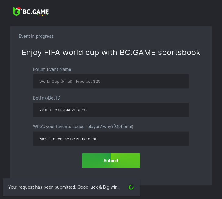 TicketID: 2215953908340236385 I've joined the forum event; Now it's your turn to win generous rewards from BC.GAME!