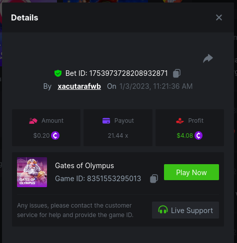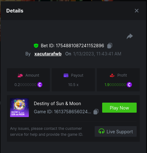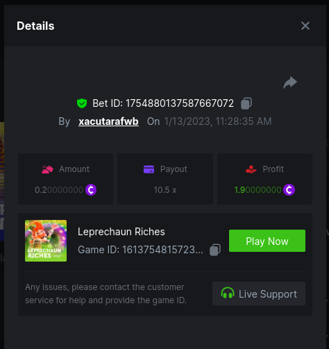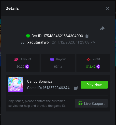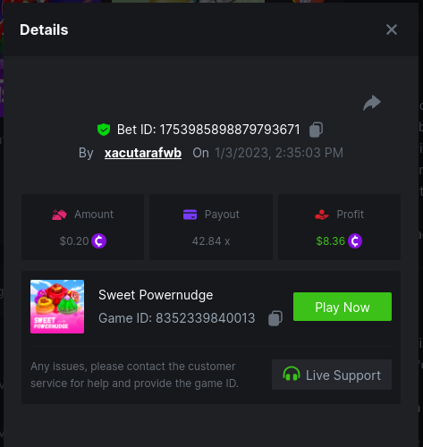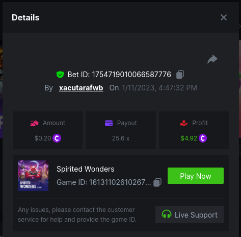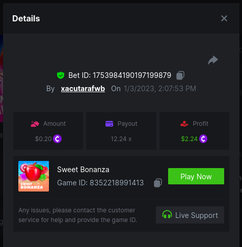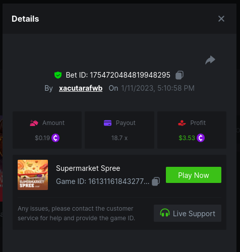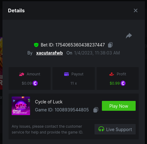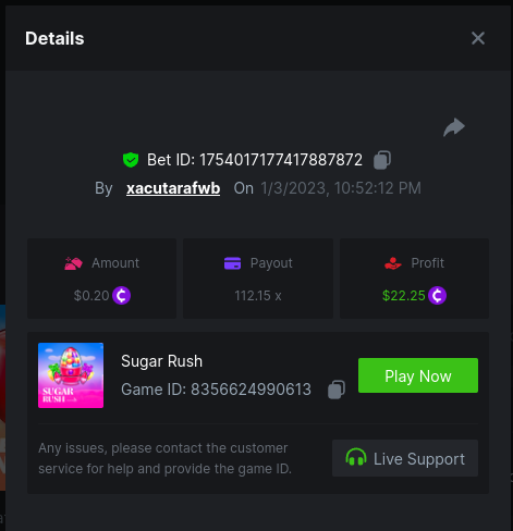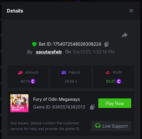 Spirited Wonders 25.6 x https://bc.game/#/sd/1115IM3FUOF76B Legendary Monkey King 64.85 x https://bc.game/#/sd/1115JT066TRBBN Supermarket Spree 18.7 x https://bc.game/#/sd/1115K3VJGKZ0UR Candy Bonanza 63.1 x https://bc.game/#/sd/1118OHFQBO4BGZ Wild Bounty Showdown 12.4 x https://bc.game/#/sd/1115Q1VQ2K8HEB Wild Bandito 49.6 x https://bc.game/#/sd/1115QILXAN740J Butterfly Blossom 130.85 x https://bc.game/#/sd/1115TMVOJFUBRN Prosperity Fortune Tree 17.15 x https://bc.game/#/sd/1119WV06CV0YS3 Leprechaun Riches 10.5 x https://bc.game/#/sd/1119XA7NFTY1W3 Destiny Of Sun & Moon 10.5 x https://bc.game/#/sd/1119Y7ZGU2UZV7