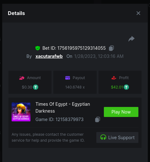 Majestic Winter - Avalanche 75 x https://bc.game/#/sd/11294DS7RB7XUB Book Of Wolves 170.5 x https://bc.game/#/sd/112959XUXC6RYR Times Of Egypt - Egyptian Darkness 140.67 x https://bc.game/#/sd/1129WVY4S5TU6R -