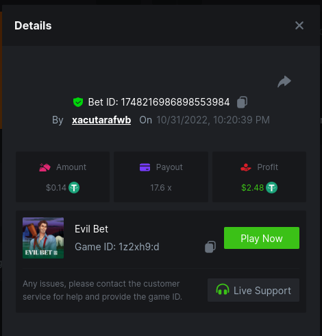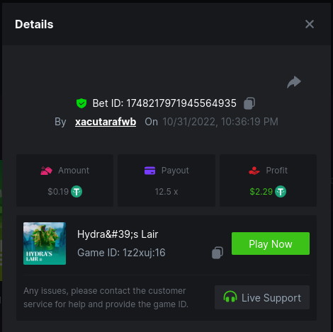 Evil Bet 17.6 x https://bc.game/#/sd/10W7OGI6NPZIMR Re Kill 19 x https://bc.game/#/sd/10W7P4T68X8X03 Hydra's Lair 12.5 x https://bc.game/#/sd/10W7PFFK8RLDEB Queen Of Spades 34.2 x https://bc.game/#/sd/10W7Q20RRX9HQR
