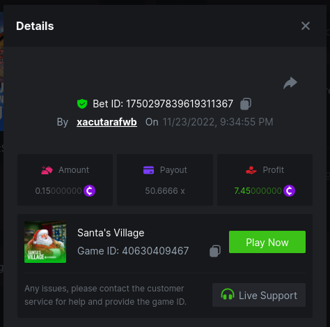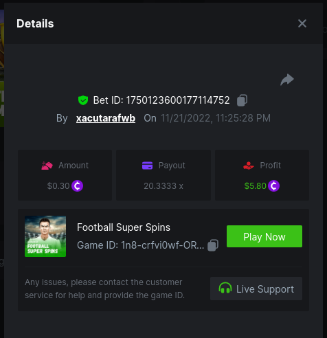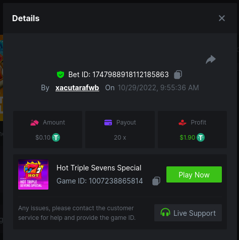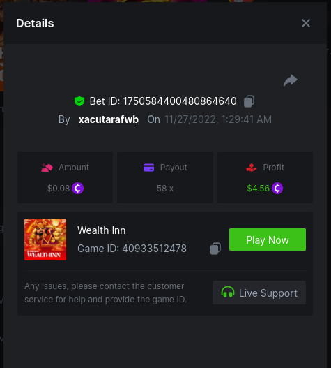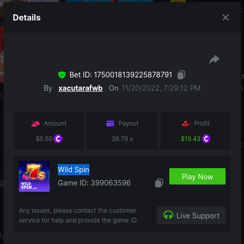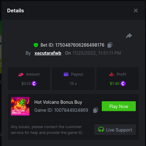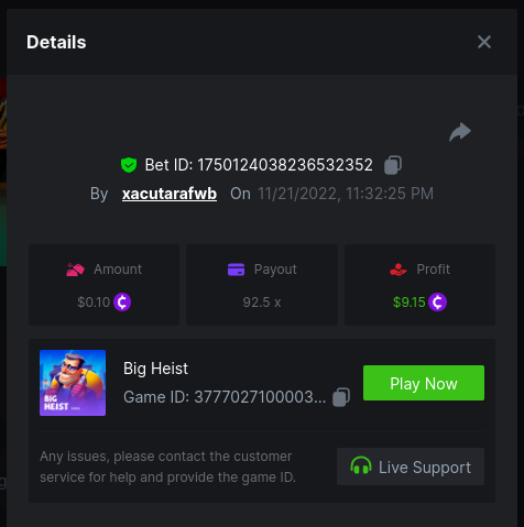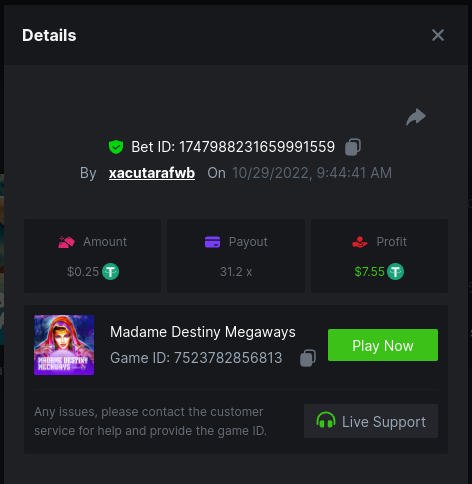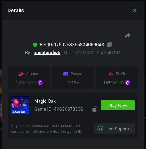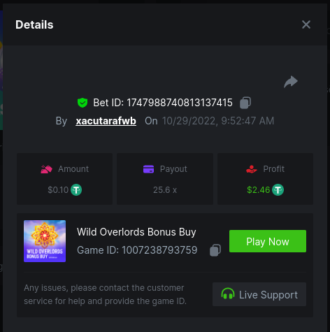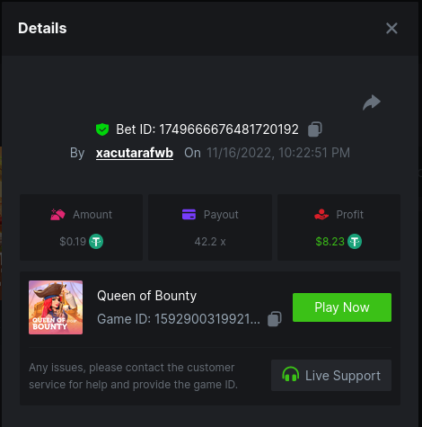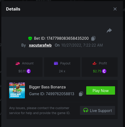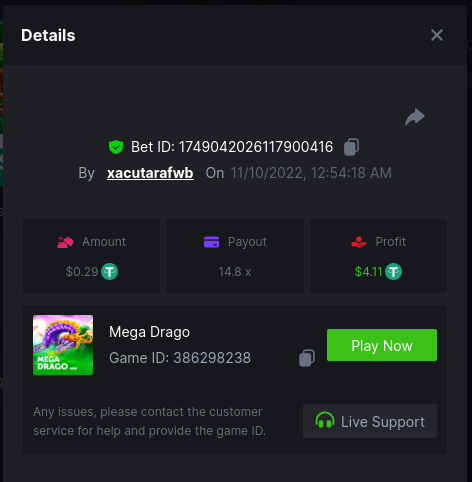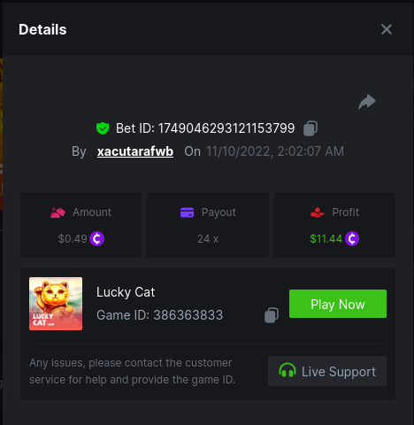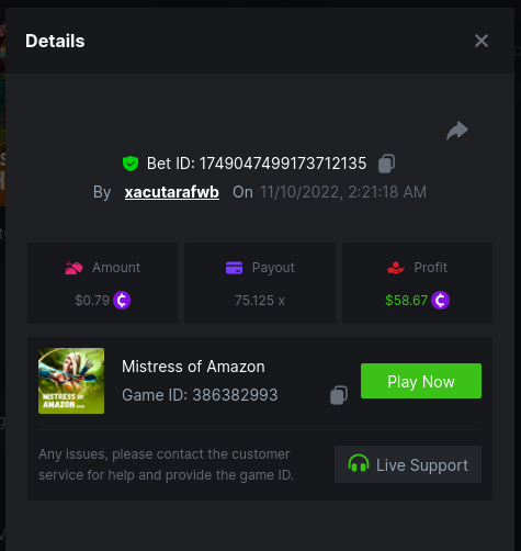 Frozen Mirror 29.17 x https://bc.game/#/sd/10WU8OOE19Z4LV Mega Drago 14.8 x https://bc.game/#/sd/10WU8TOVUWTJBN Lucky Cat 24 x https://bc.game/#/sd/10WUD1EY9KZI8J Mistress Of Amazon 75.125 x https://bc.game/#/sd/10WUE7X9BJZWNN -