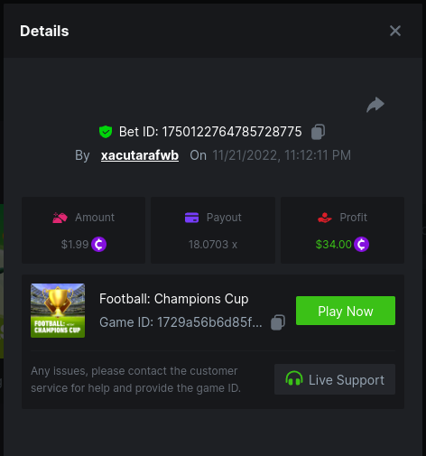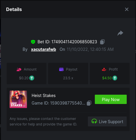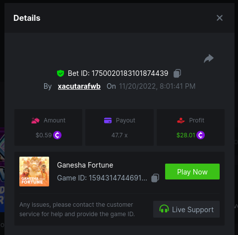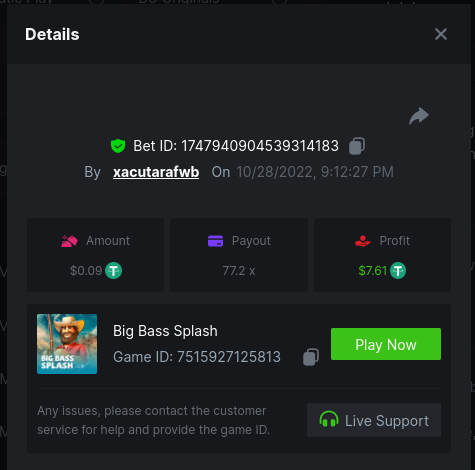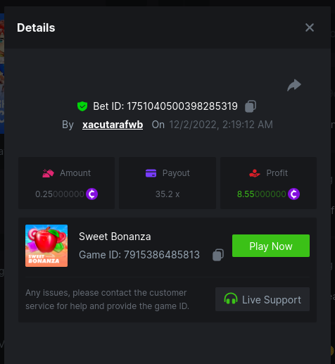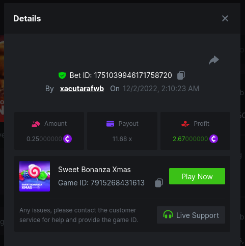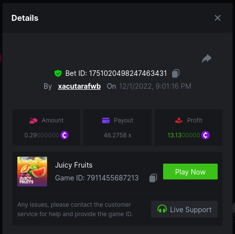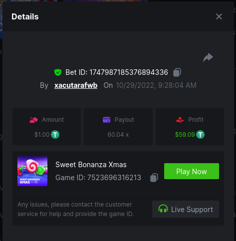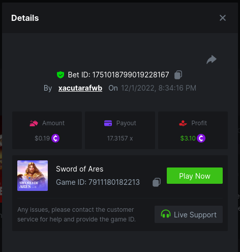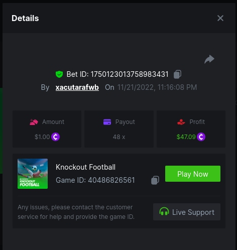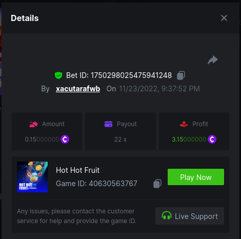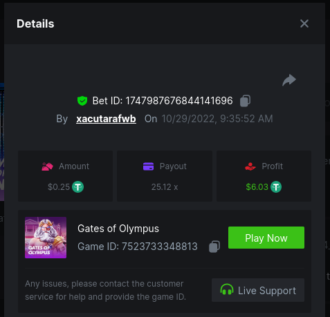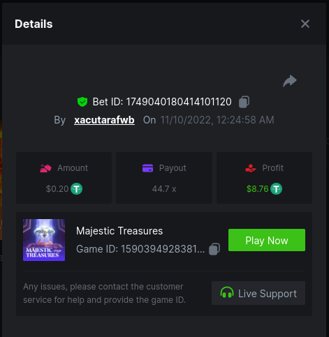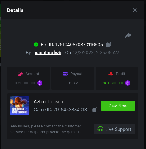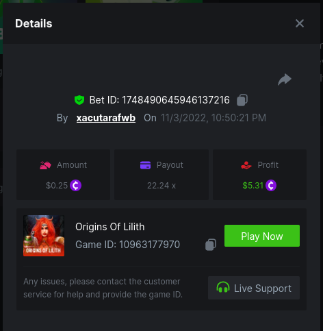 Frozen Mirror 29.17 x https://bc.game/#/sd/10WU8OOE19Z4LV Mega Drago 14.8 x https://bc.game/#/sd/10WU8TOVUWTJBN Lucky Cat 24 x https://bc.game/#/sd/10WUD1EY9KZI8J Mistress Of Amazon 75.125 x https://bc.game/#/sd/10WUE7X9BJZWNN -