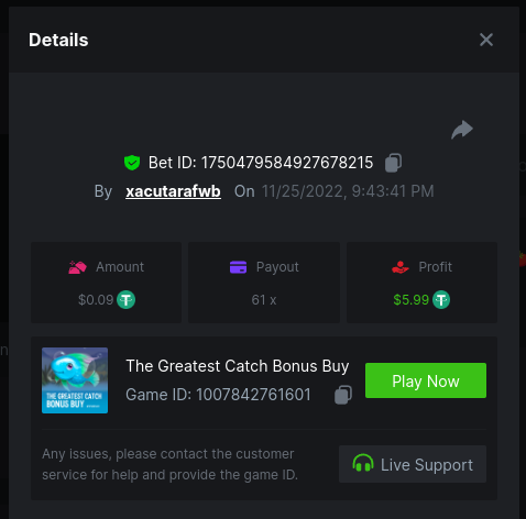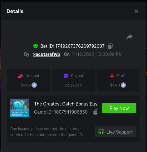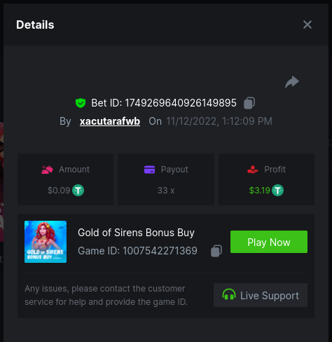 Cycle of Luck 10 x https://bc.game/#/sd/10X0E8PJEFJAJ7 Juicy Gems Bonus 11.11 x https://bc.game/#/sd/10X0EK6OZNOTN7 The Greatest Catch Bonus Buy 22.22 x https://bc.game/#/sd/10X0EQ431QJXG3 Gold Of Sirens Bonus Buy 33 x https://bc.game/#/sd/10X0GZ5LKFGGER