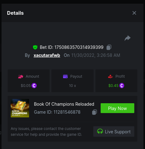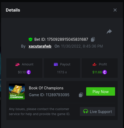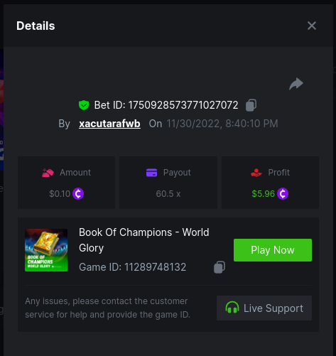 Book Of Champions Reloaded 10 x https://bc.game/#/sd/10Y82E3QYBYPSJ Book Of Champions 117.5 x https://bc.game/#/sd/10Y9UQIWA1CC9F Lucky Score 26 x https://bc.game/#/sd/10Y82LM6TNOLQR Book Of Champions - World Glory 60.5 x https://bc.game/#/sd/10Y9UFIAIJL4PF -