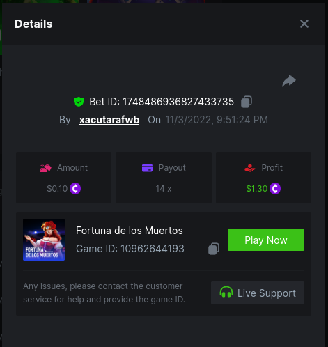 Retro Muertos 31.9 x https://bc.game/#/sd/10WF6ODOMKNA4Z Book Of Skulls 10 x https://bc.game/#/sd/10WF4IPI5GLCLV Fortuna de los Muertos 14 x https://bc.game/#/sd/10WF6U0AYFVBBN Book Of Muertos 10 x https://bc.game/#/sd/10WF6VSLT5GWSZ Origins Of Lilith 22.24 x https://bc.game/#/sd/10WF5X8042A4GJ -