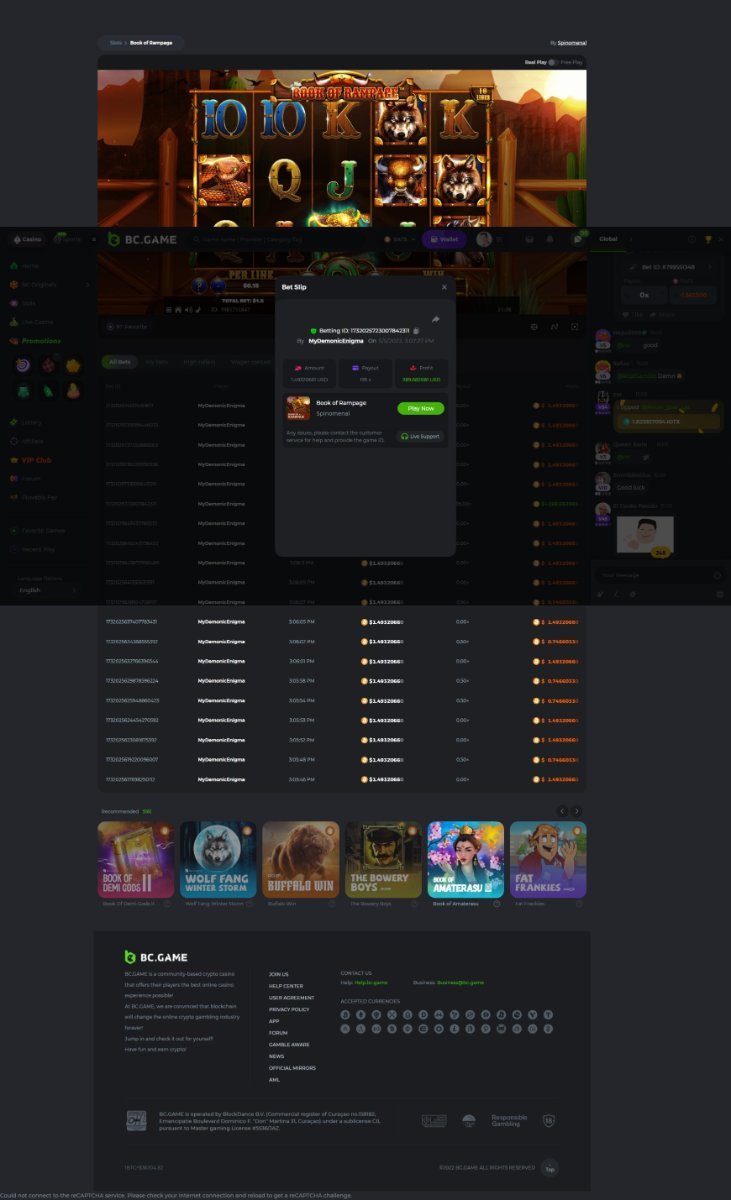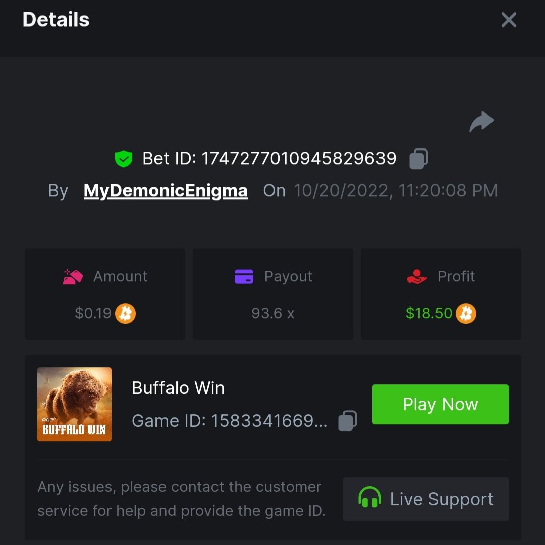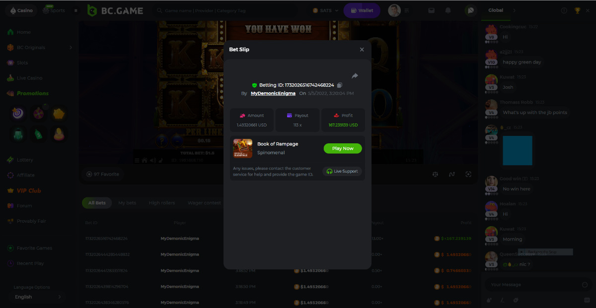 Book of Wolves - Full Moon - 200x @ $0.10 Betting ID: 1732512565935034631 Egyptian Ways - 310x @ $1.40 Bet ID: #1732213992274750592 Book of Rampage - 195x @ $1.50 Bet ID: #1732025723007842311 ($1.50 @ 195x) Book of Rampage - 113x @ $1.50 Betting ID: 1732026516742468224 -